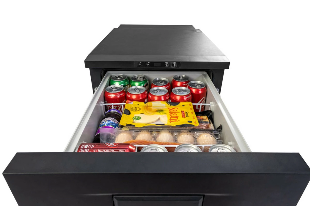 Compact drawer camper fridge with LED display