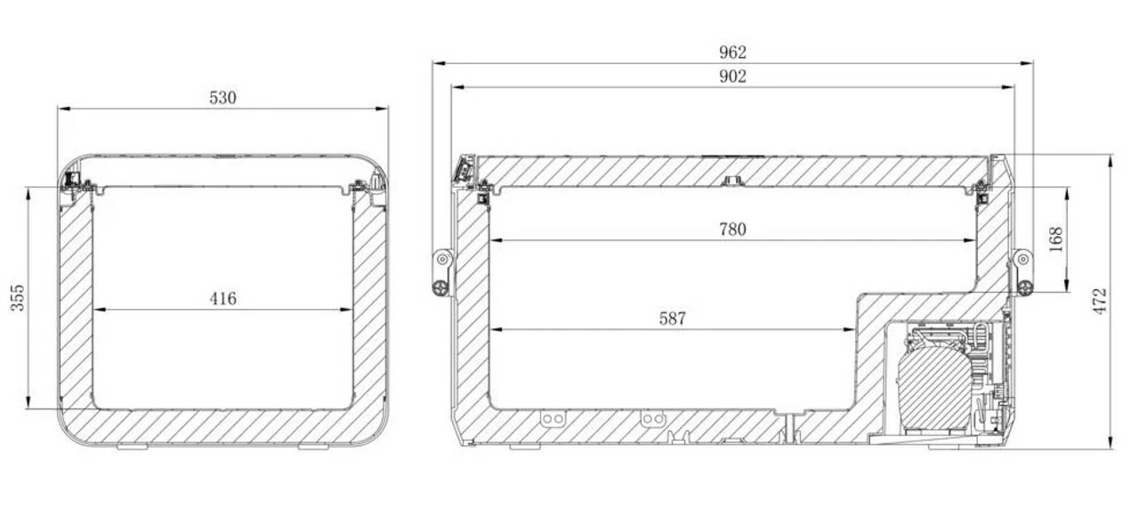 - Dimensions: depth 530 mm, height 472 mm, width 962 mm