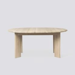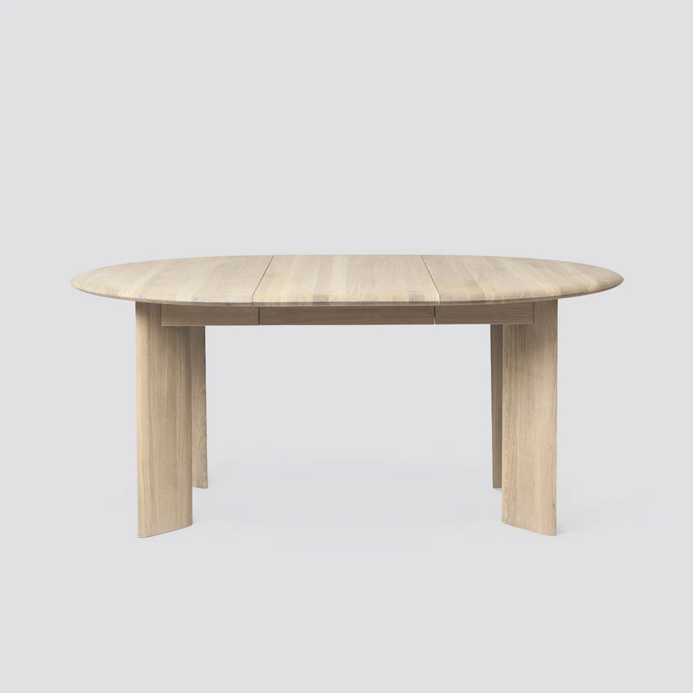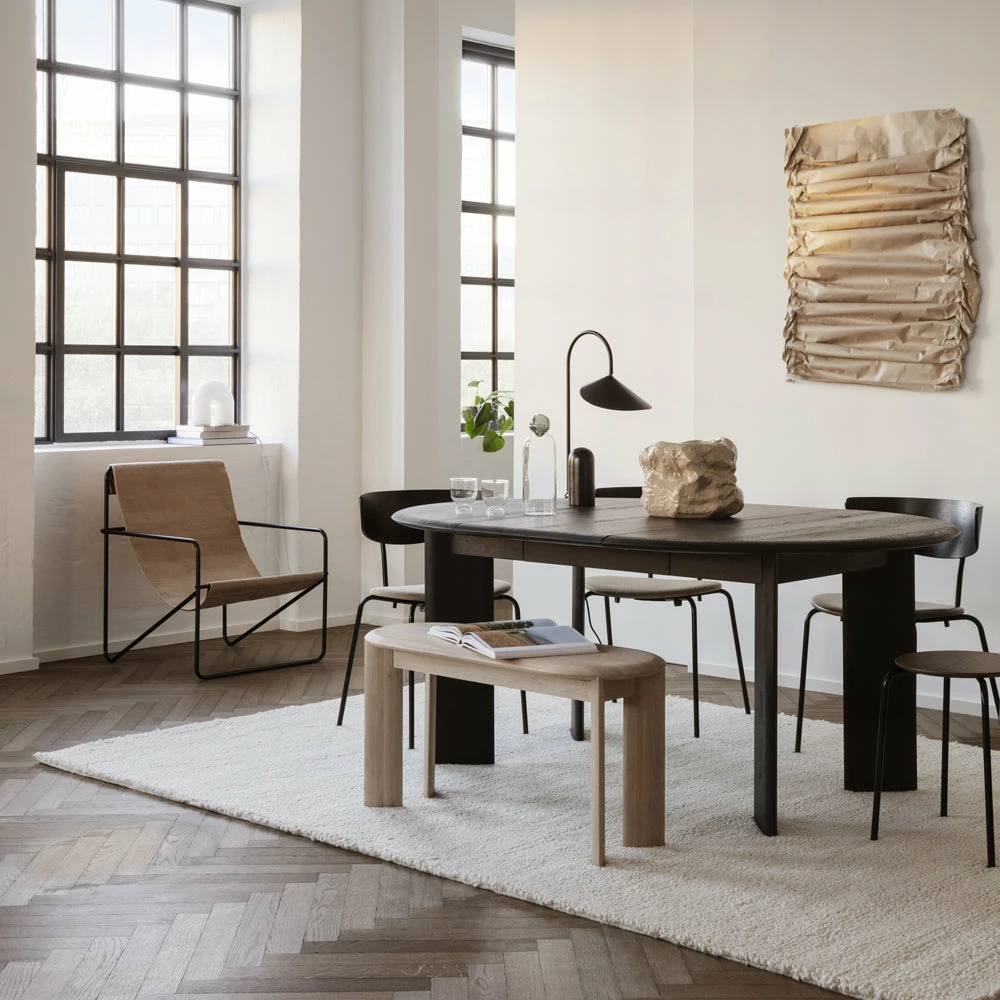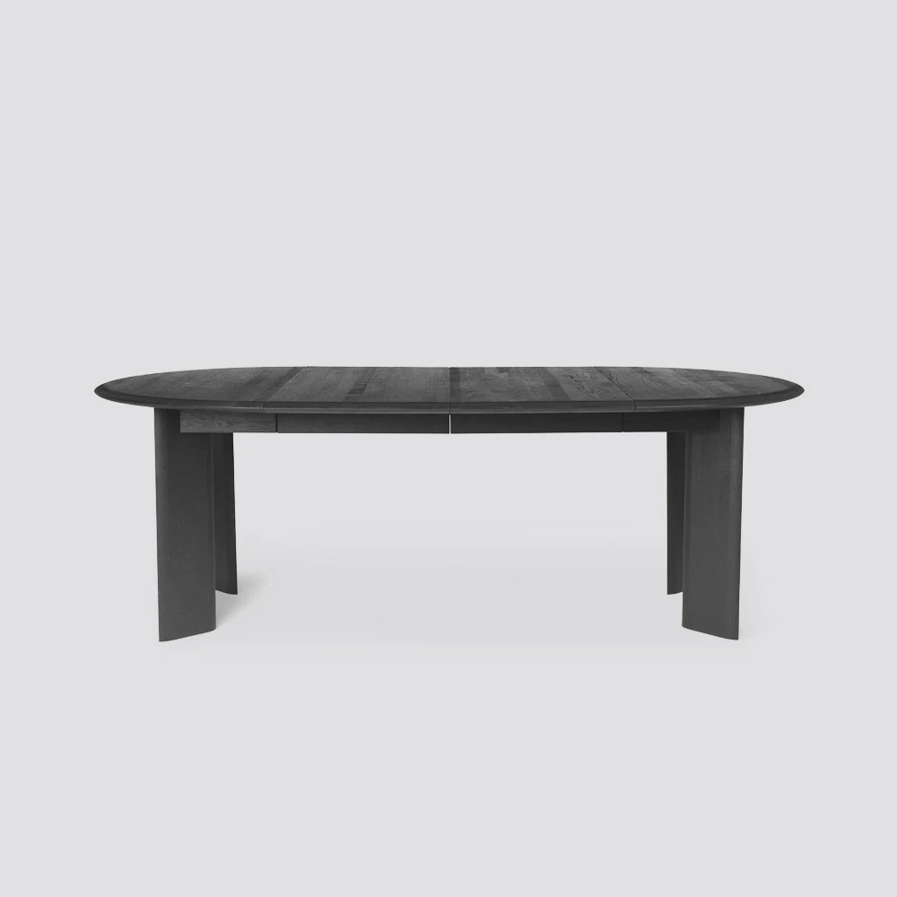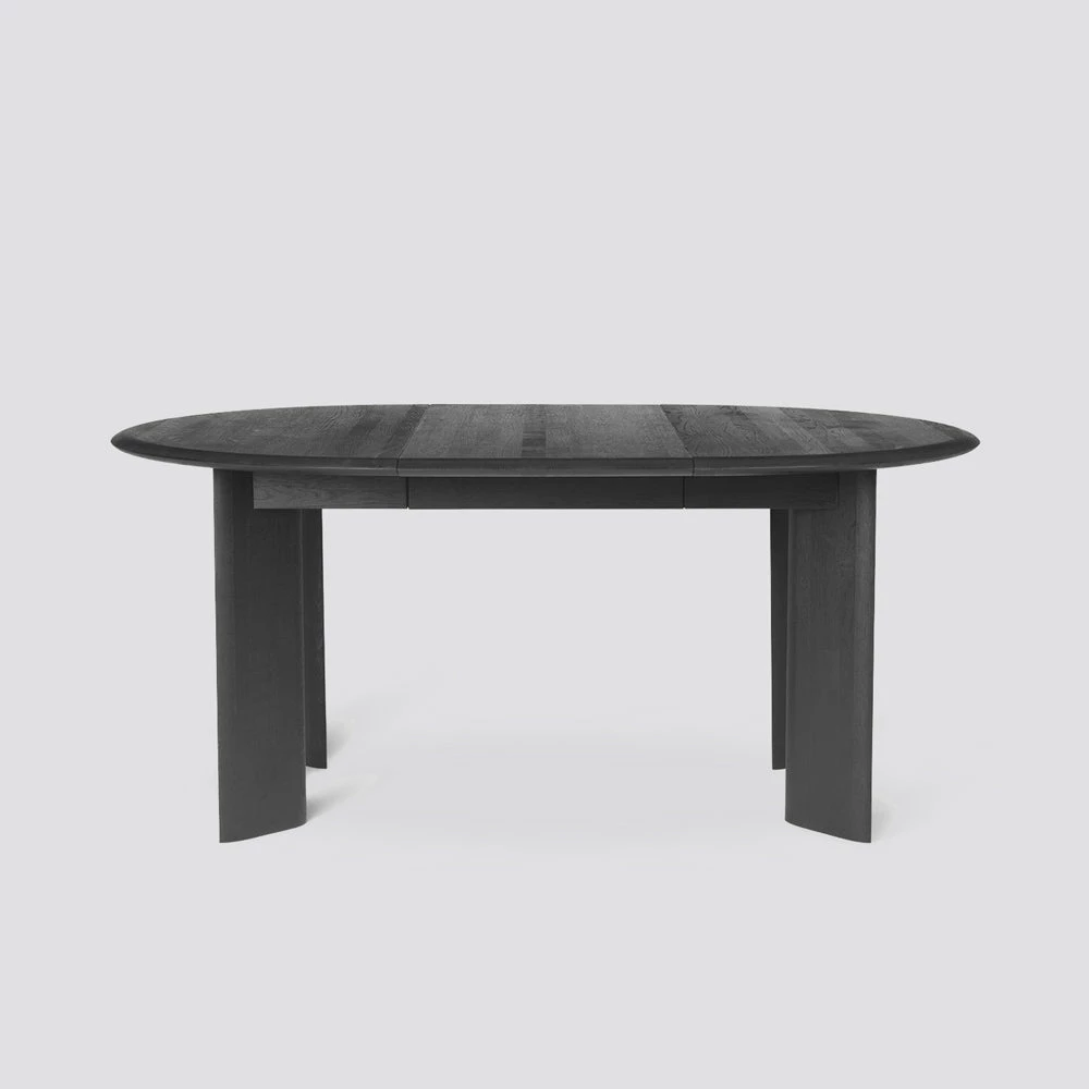 Available in either a natural oiled or black oiled finish, and with an extension leaf to expand the design to accommodate additional guests, both tabletop and legs are minimally detailed with gently rounded edges for a soft feel.