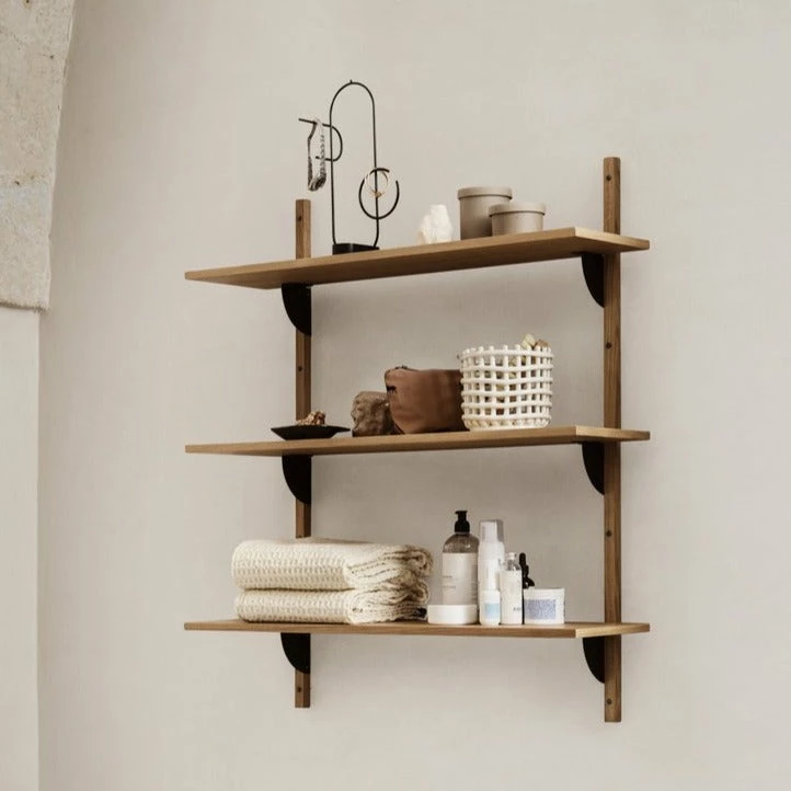 A new and modern take on mid-century shelving units, the Sector series from Ferm Living is defined by its sturdy simplicity and classic combination of wood and brass.