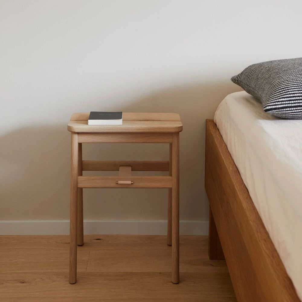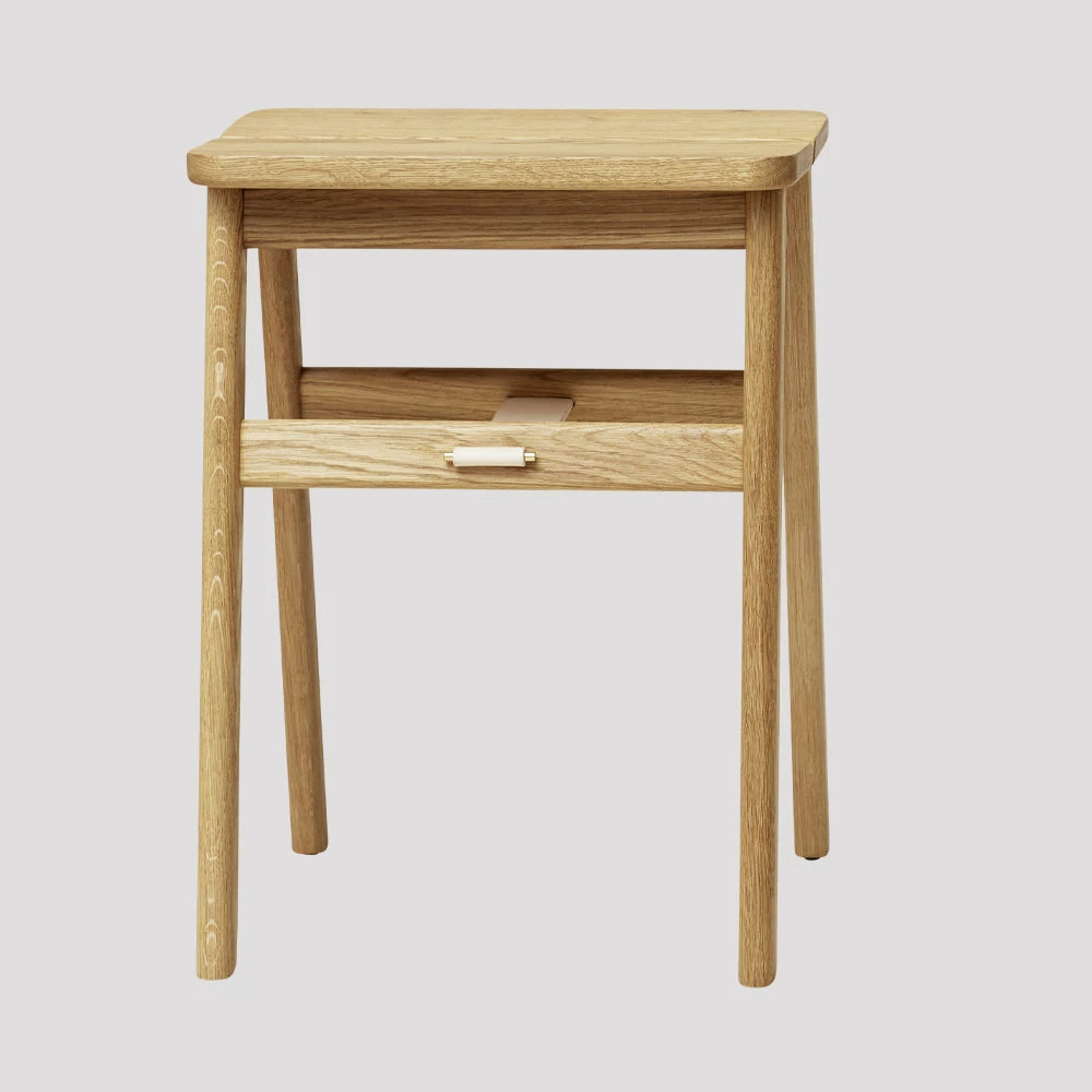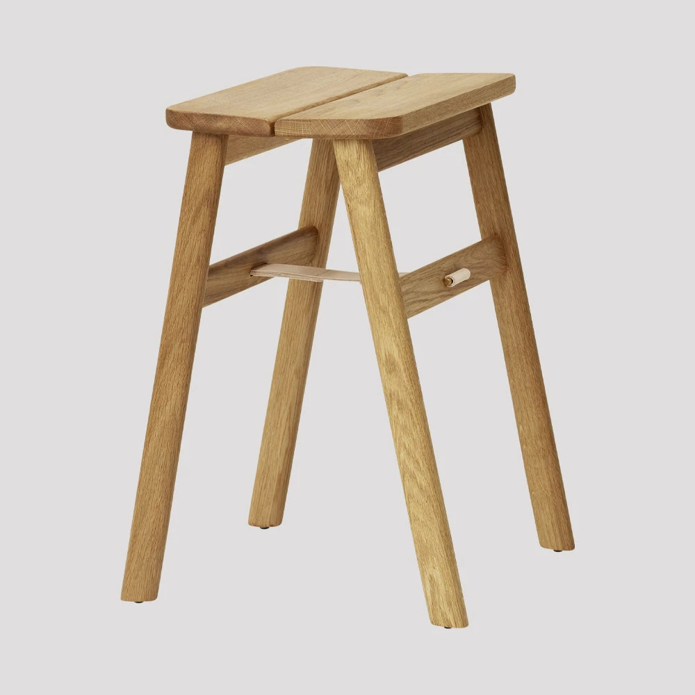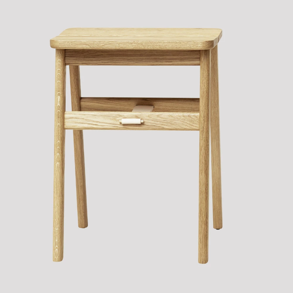 The leather band beneath the seat has a supporting brass rod which gives the stool a final touch of design detail. And it comes with a brass hook for wall mounting.