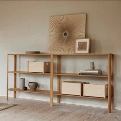 The Leaf Shelf is a shelving system that strikes the ultimate balance between aesthetics, stability and packability. It can be used as a sideboard, free standing shelving or room divider.