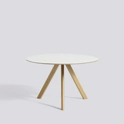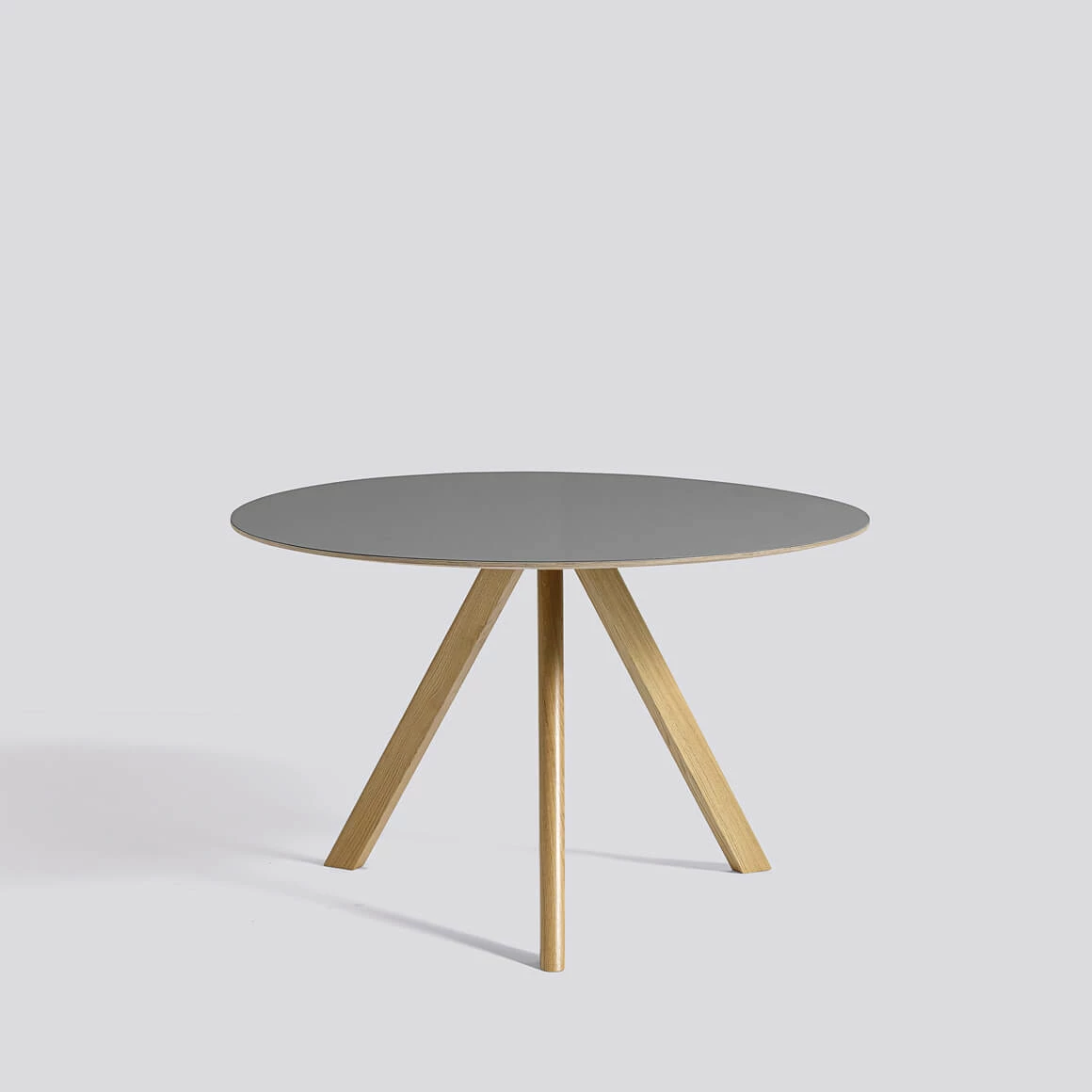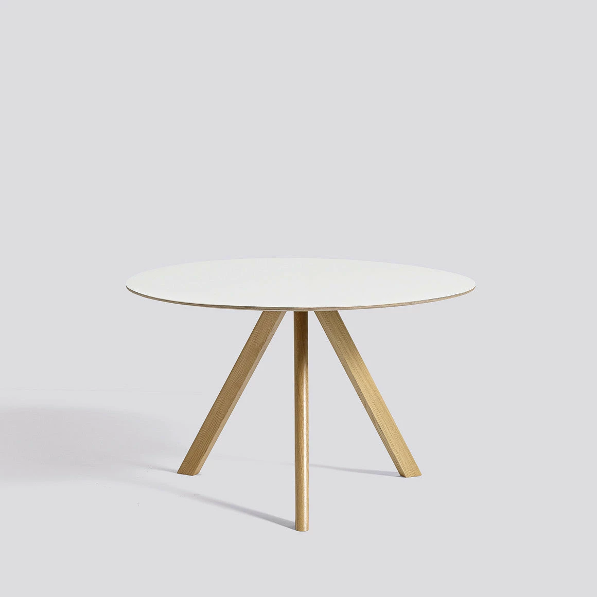 Simple angled legs in solid oak with a linoleum or laminate covered round top. Available in two sizes. CPH20