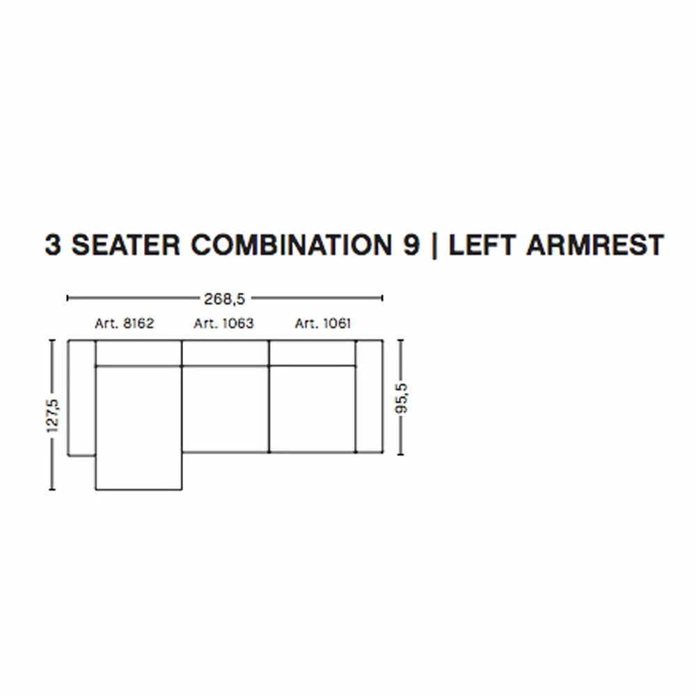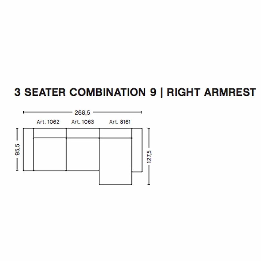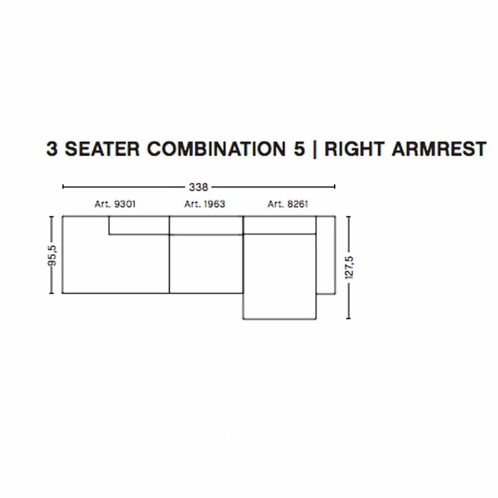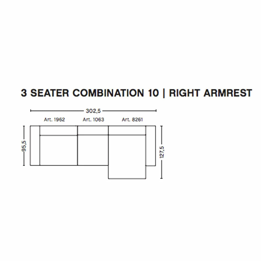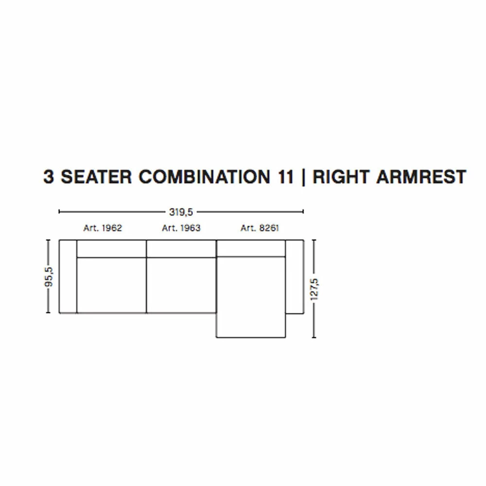 The modular configurations can be made with armrests on the left or right side to suit (as you look at the sofa).