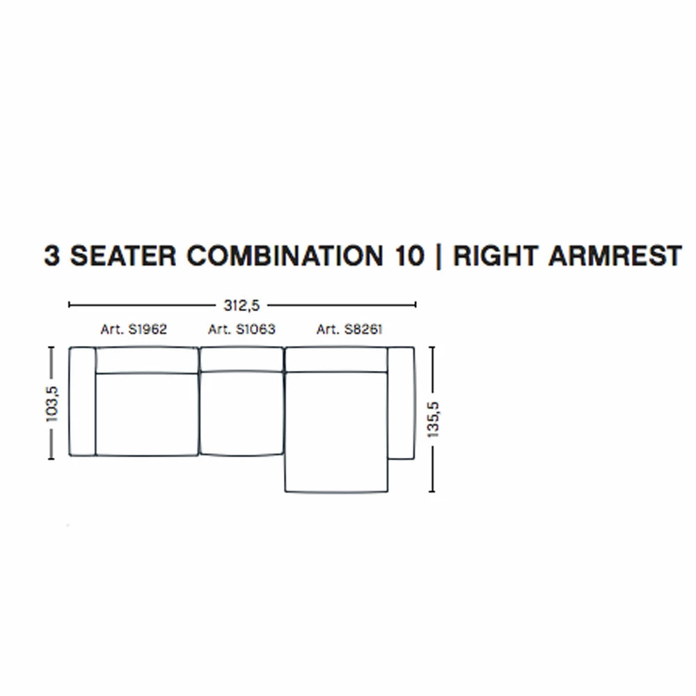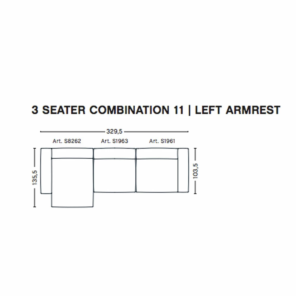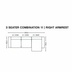 The modular configurations can be made with armrests on the left or right side to suit (as you look at the sofa). This is the high armrest version… but you can also order the low armrest version as an alternative.