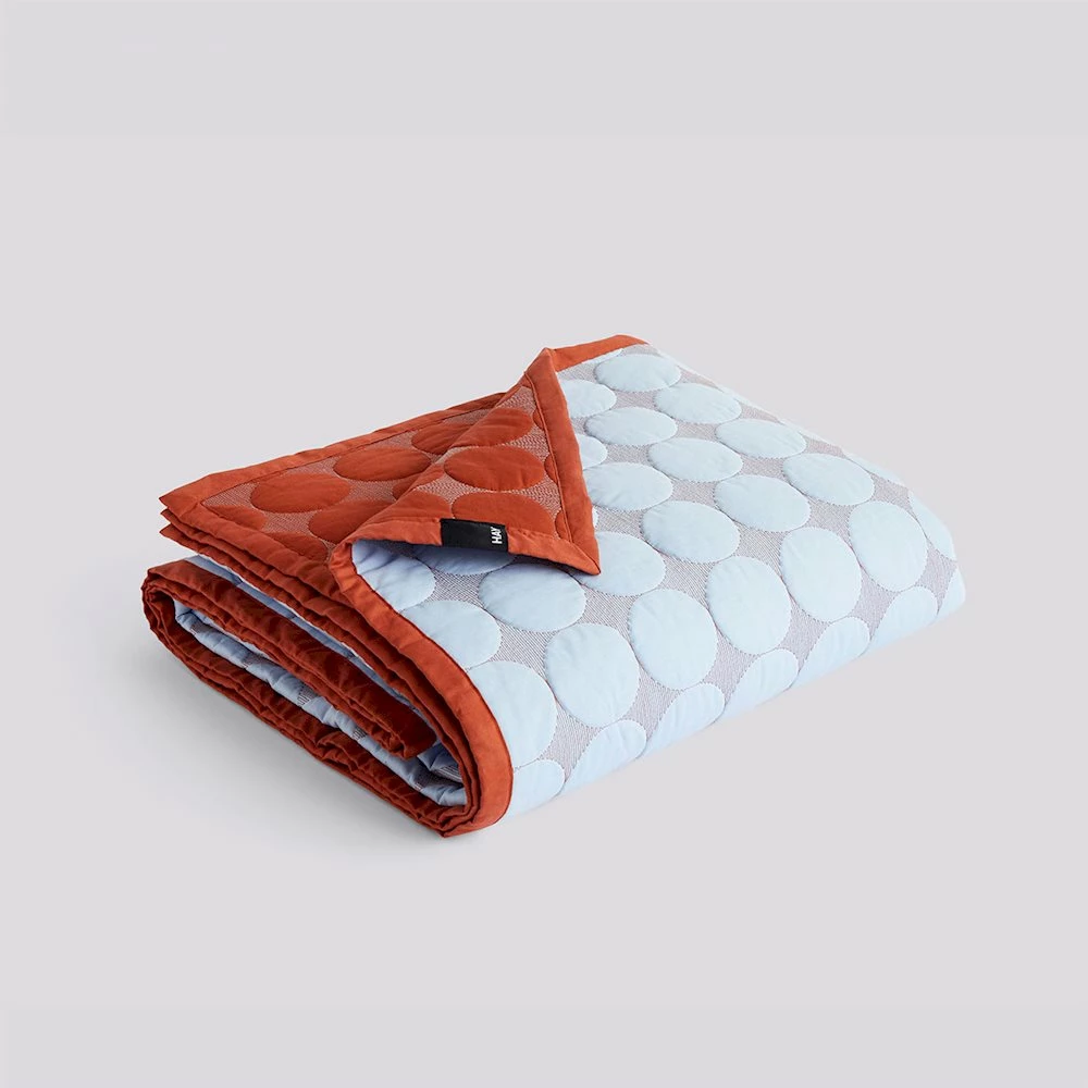 A contemporary dot designed quilted bed cover by Danish design masters, HAY