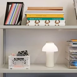 The PC Portable Lamp is a freestanding lamp for indoor and outdoor use. Made from a scratch and water-resistant plastic, Its battery-powered design gives the freedom and flexibility to move it anywhere.