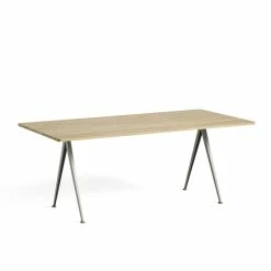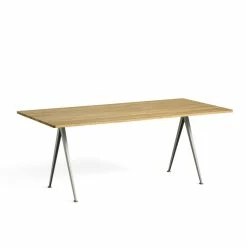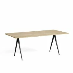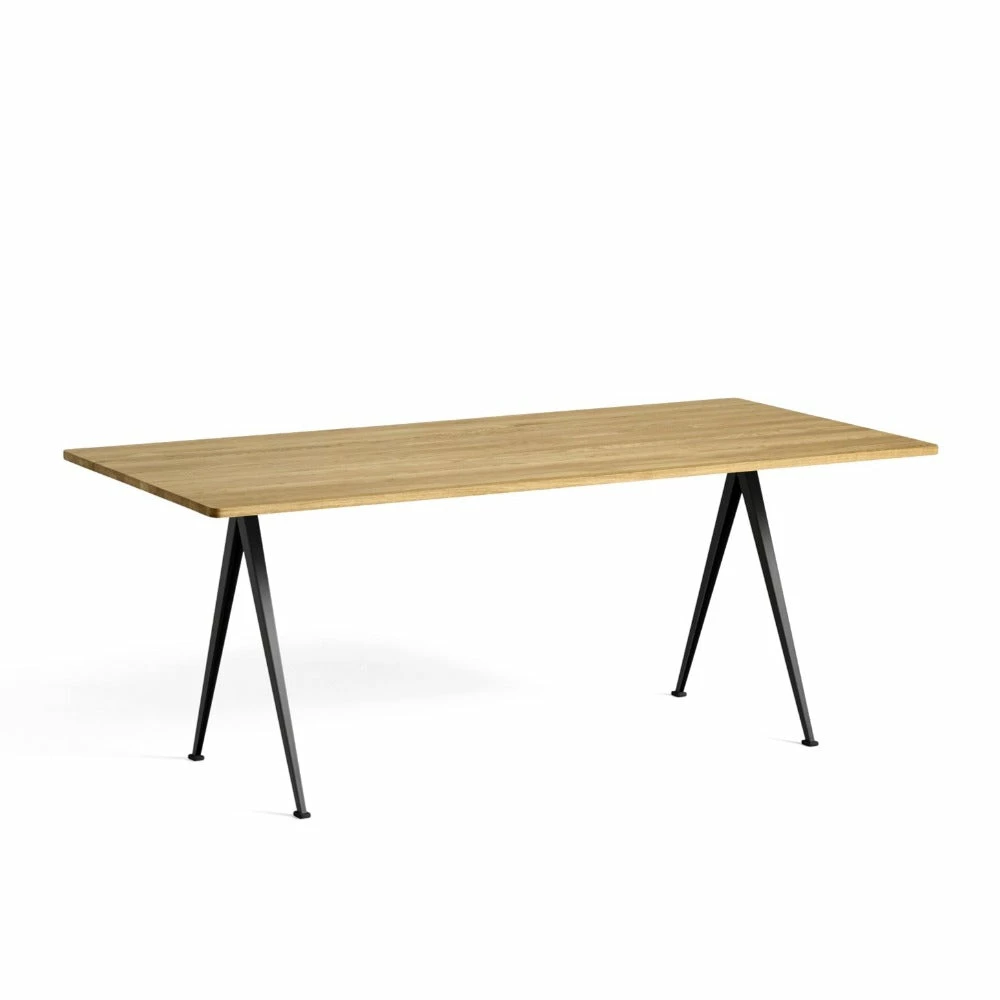 Designed to be functional, light and strong, the Pyramid Table features a steel-sheet base with a rectangular oak tabletop. Originally created by Wim Rietveld while working at Ahrend in the 1950s, the cutout steel collection has been relaunched by HAY together with Ahrend.
