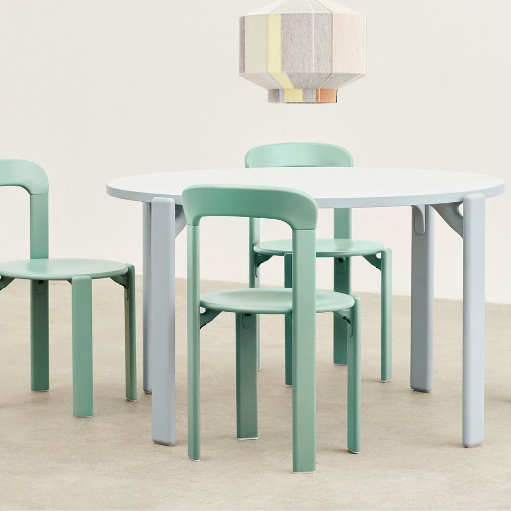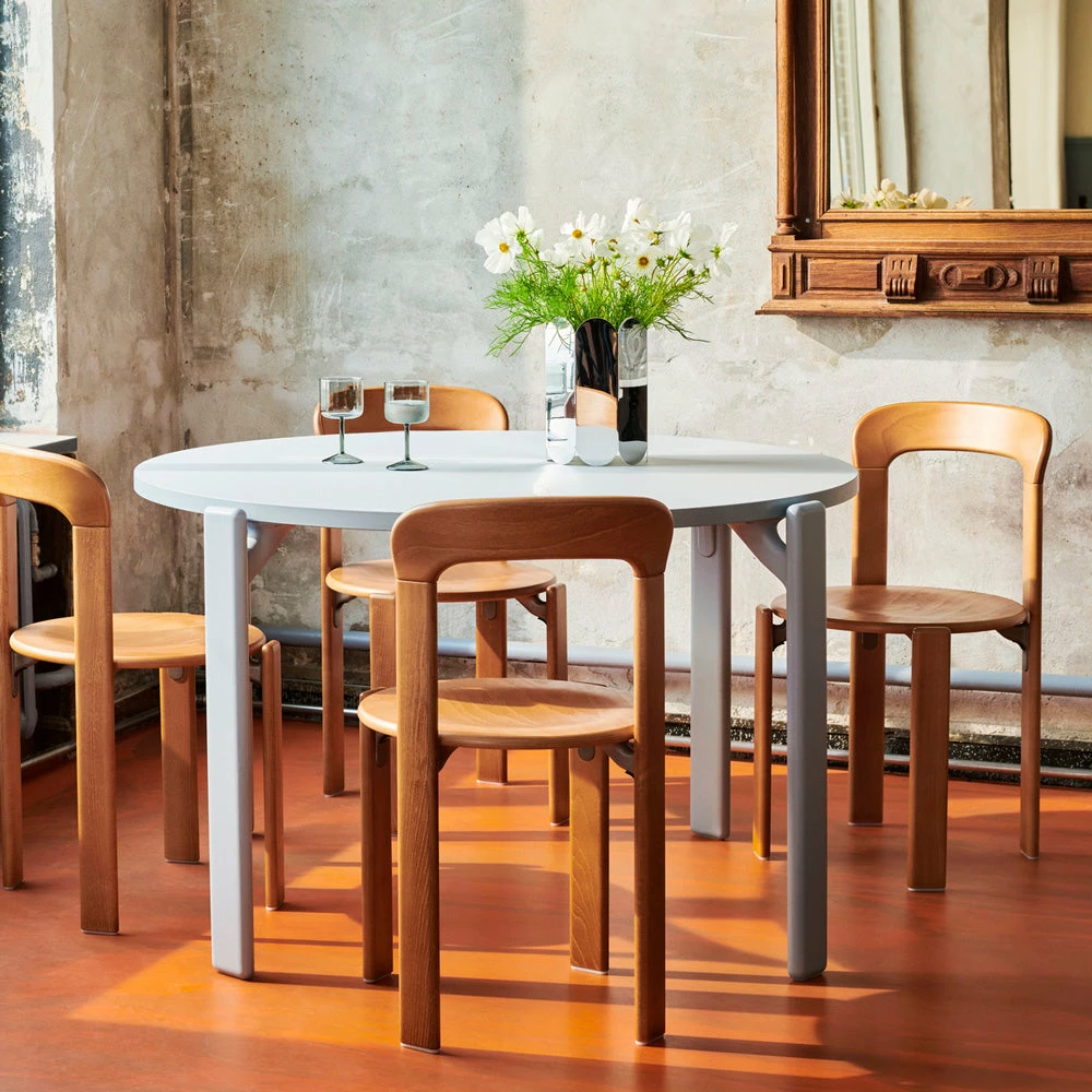 Made with a solid beech frame with laminate or veneer tabletop, the table is available in original colours, as well as new tones selected by HAY.