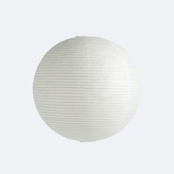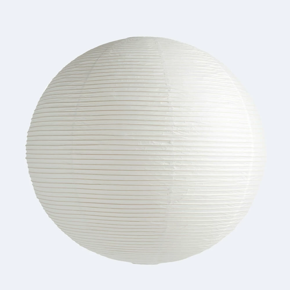 A classic circular paper lantern design with a ribbed bamboo frame.