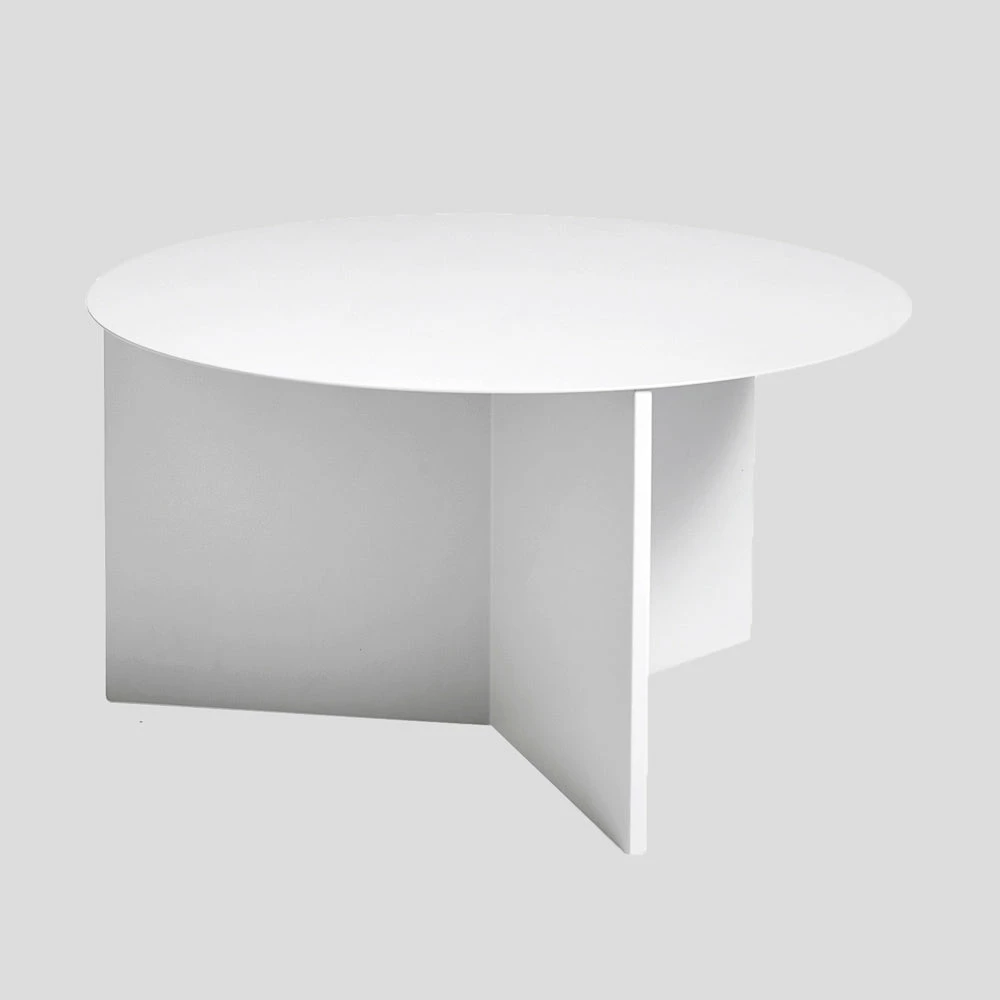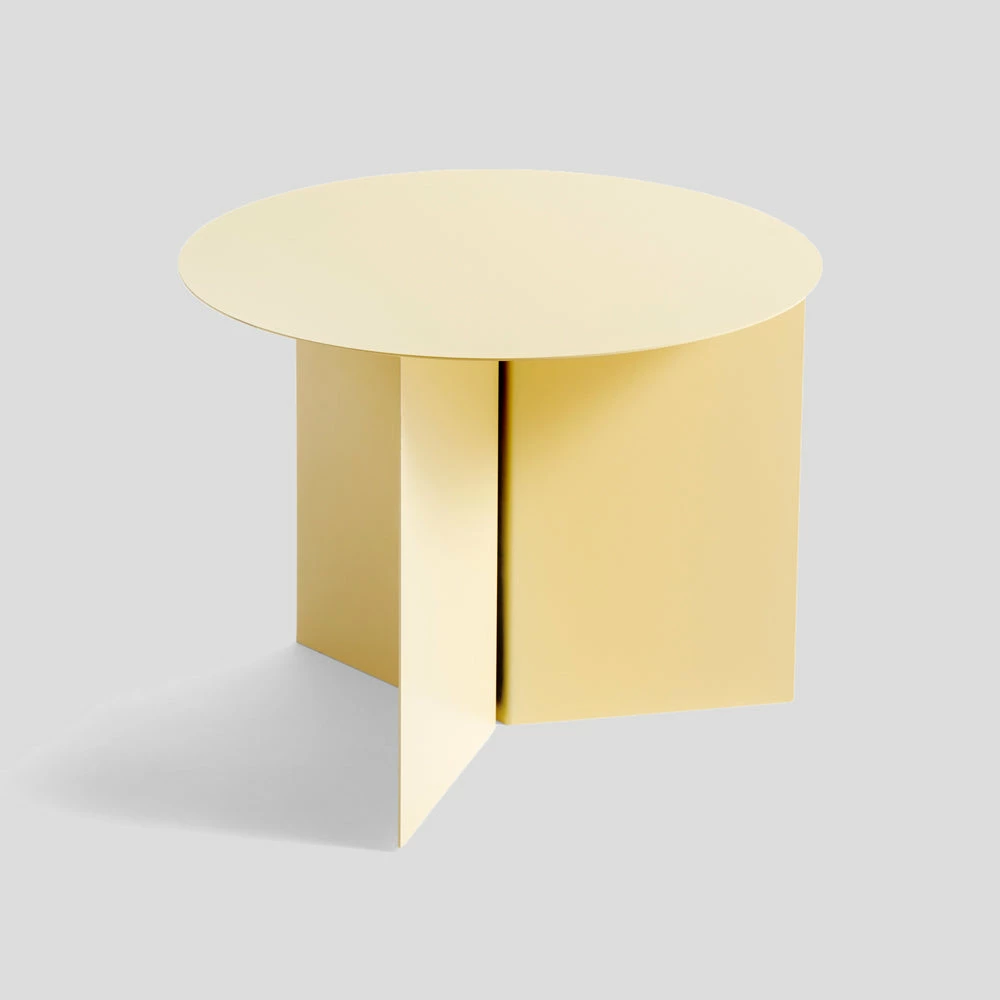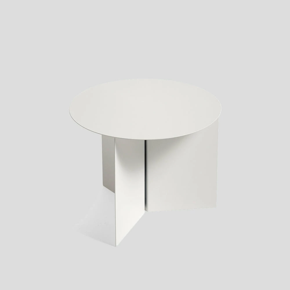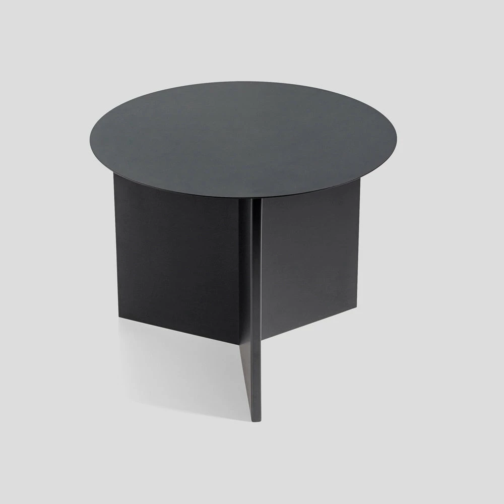 Inspired by paper origami, the Slit Table family comprises of a high side table, low side table and a larger coffee table. Made from powder coated metal in a selection of colours.