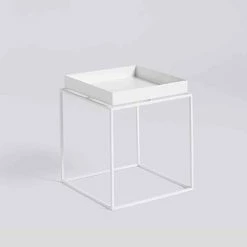 The minimal metal Tray Table provides a modern and adaptable alternative to a more conventional coffee table.