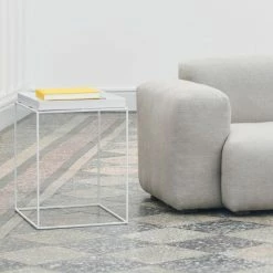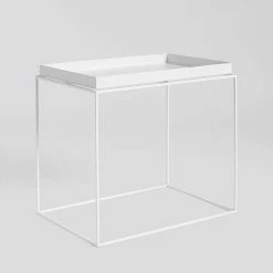 They look great grouped together and can be used in any room of the house. By Danish design masters, HAY Made from powder coated steel with a removable tray top. The high table is lovely as a side table against a wall.
