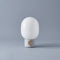 Mixing beautifully delicate glass with raw concrete strength sets this JWDA lamp apart and its frosted globe will give off a soft glow in any lounge or bedside table its placed upon.