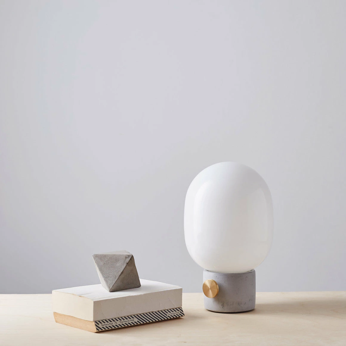 A stylish glass lamp with a concrete base and brass dimmer from Stockholm based Swedish designer Jonas Wagell and Danish design brand, Menu.