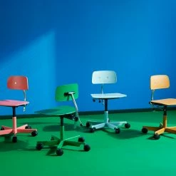The Kevi Kids swivel chair is a smaller version of the original Kevi swivel chair designed in 1958 by Danish architect Jørgen Rasmussen.