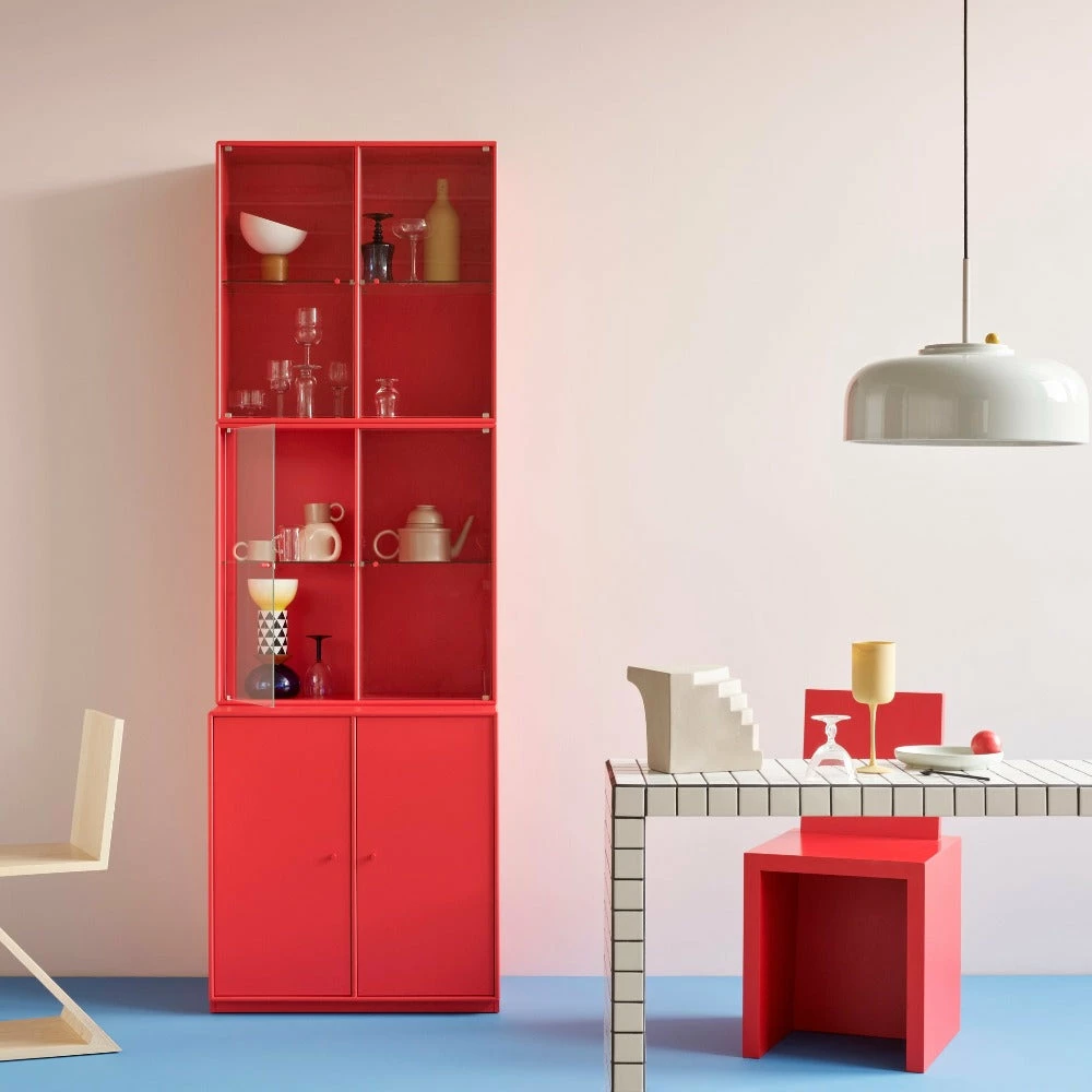 Add a pop of personality and colour to your home storage with Montana Furniture. Rise is a gorgeous tall cabinet with two sets of glass doors and a closed base unit. Perfect for holding tableware and glassware in your dining area, showing off your favourite pieces.