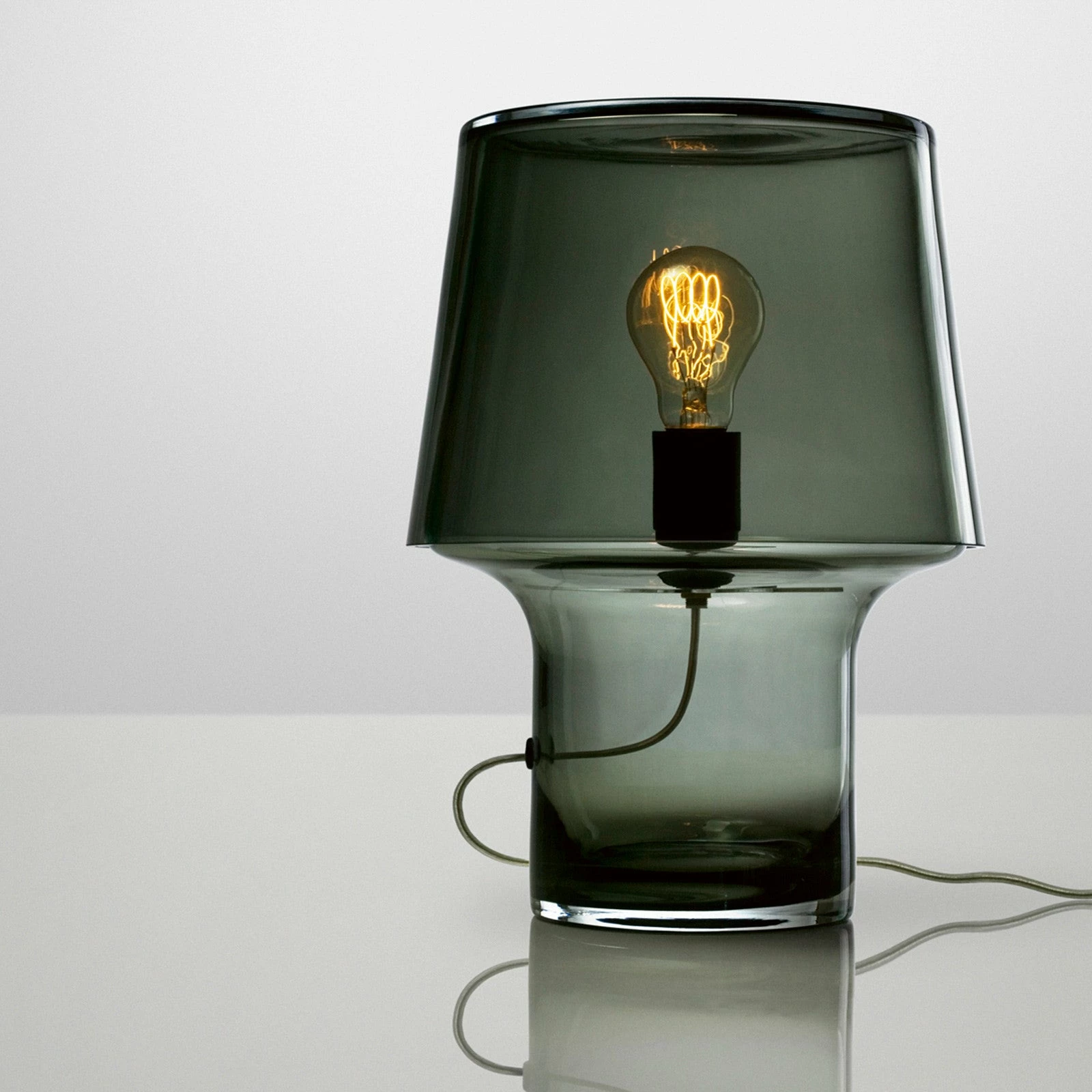 A sophisticated table lamp made from smoked glass from Danish design brand, Muuto