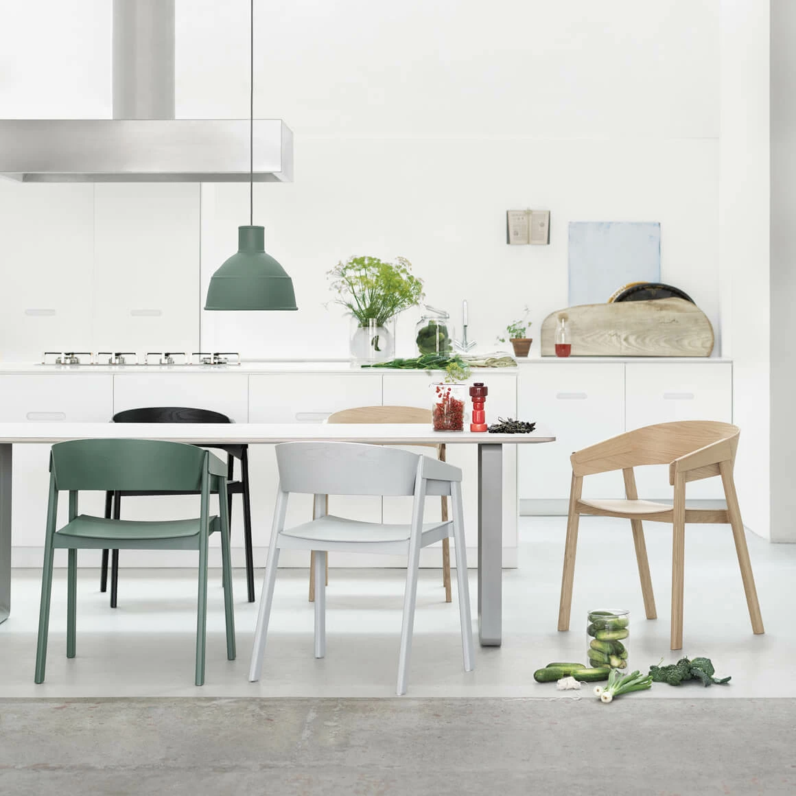 The Cover Chair, designed by Thomas Bentzen for Muuto, is a modern reinterpretation of the classic wooden armchair. It’s clever design sees thin form pressed plywood covers given the dual role of working as comfortable armrests, while at the same time ensuring that the chair holds together. Perfect at a desk or a dining table.