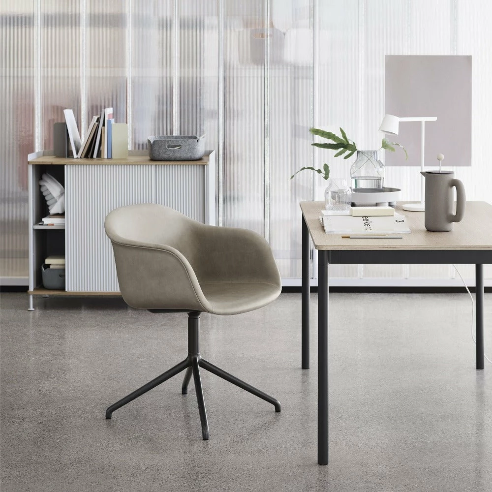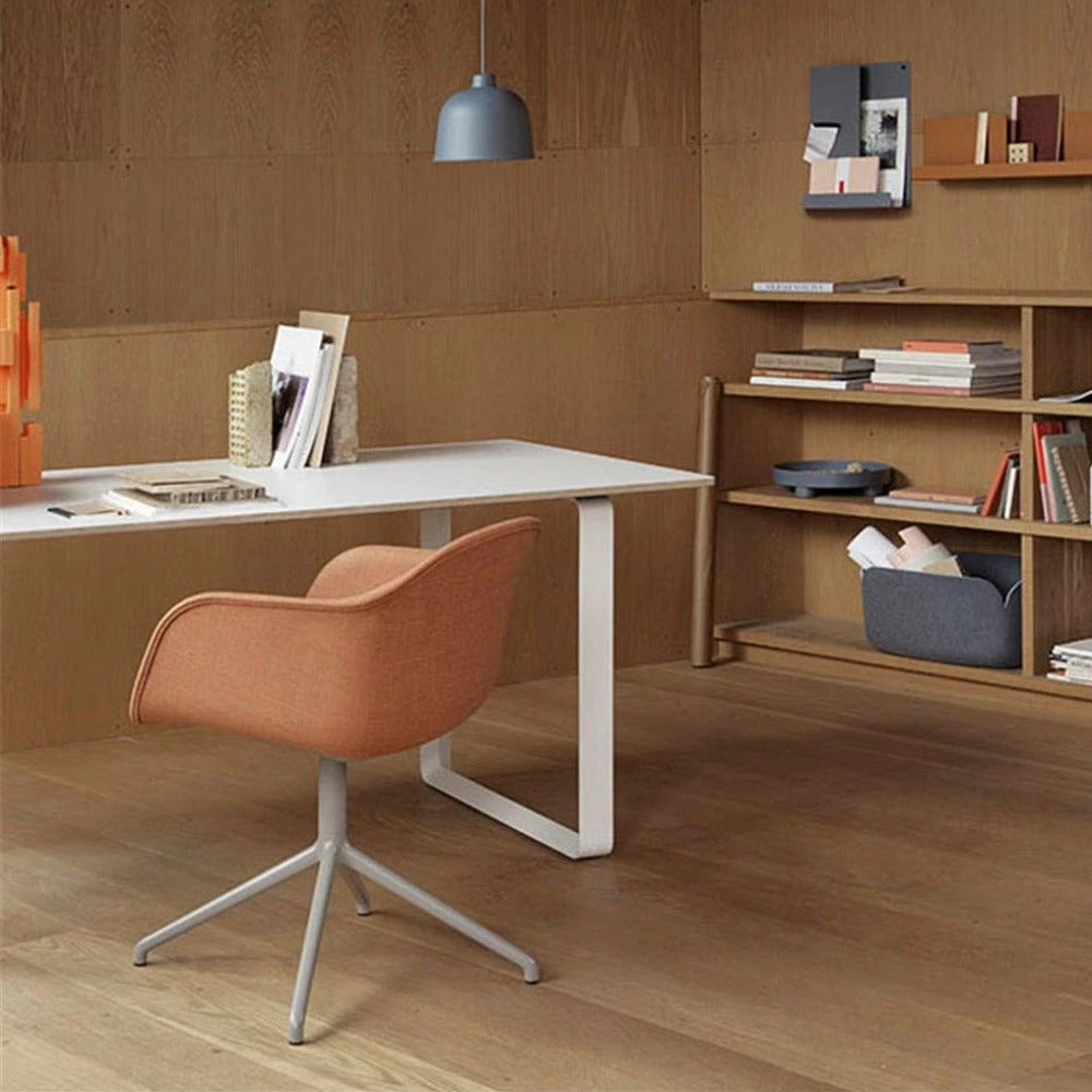 The Fiber Side Chair by Muuto brings a new perspective to the iconic shell chair through its innovative composite of plastic and wood fibres. It has friendly, embracing curves that provide comfort while taking up little space in the room. The swivel base version makes an ideal desk chair.