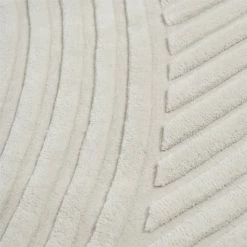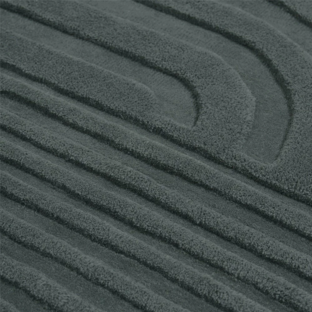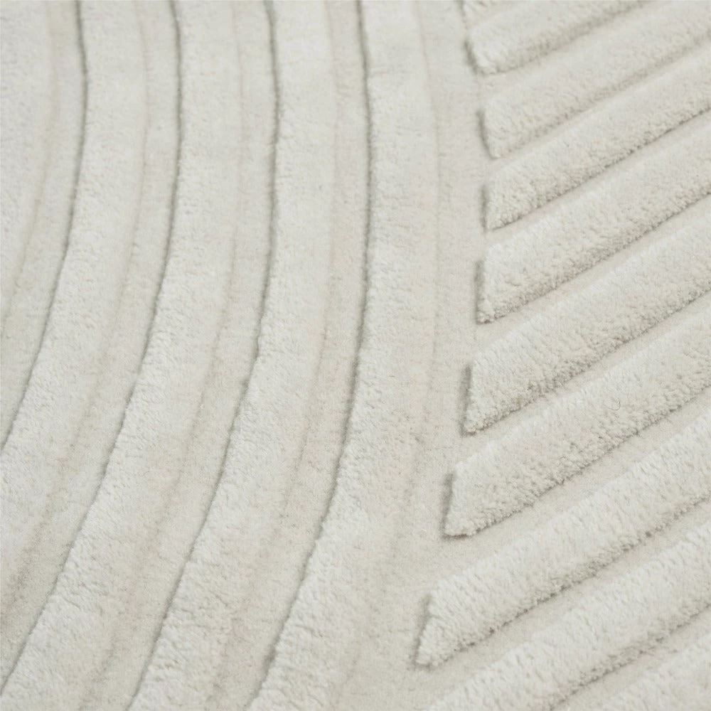 Its striking graphic pattern is produced by trimming the tufted wool at different levels, creating an eye-catching shadow play that gives a sense of being two-tone rather than monochrome.