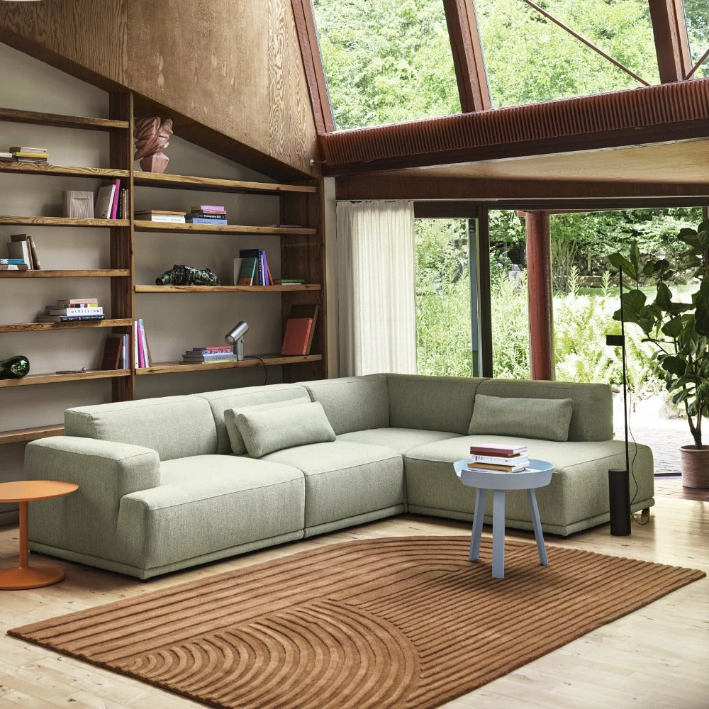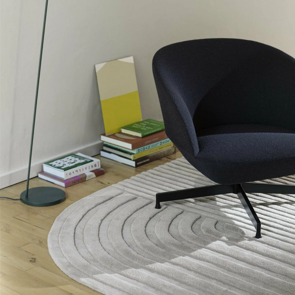 Relevo is a soft rug with a sculptural quality and a single rounded corner by Muuto.