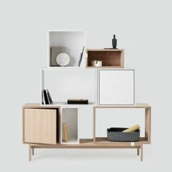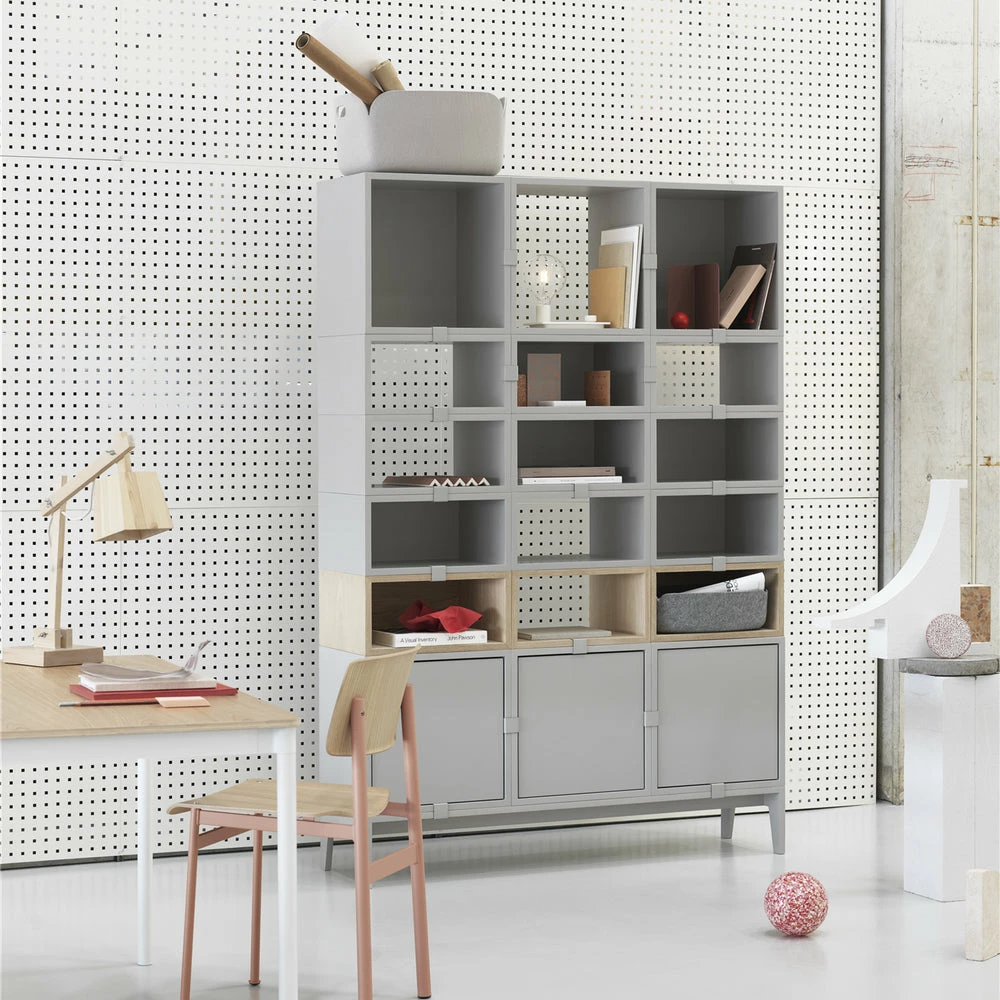 The Stacked System from Muuto provides a storage solution with endless possibilities. With the use of small clips, the modules can be rearranged to create all manner of shelving set ups, room dividers or side tables.