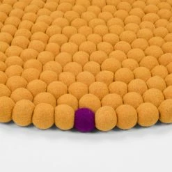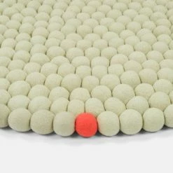A clean contemporary rug with a soft tactile feel. A playful pop is added by the single contrasting felt ball on each piece.Â