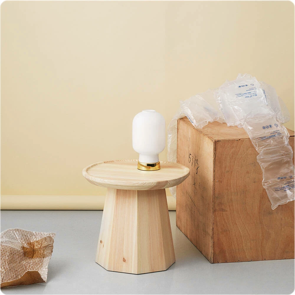 Designed by Simon Legald for Normann Copenhagen, the Pine Tables show the distinctive grain of the pinewood planks used to construct the tables.