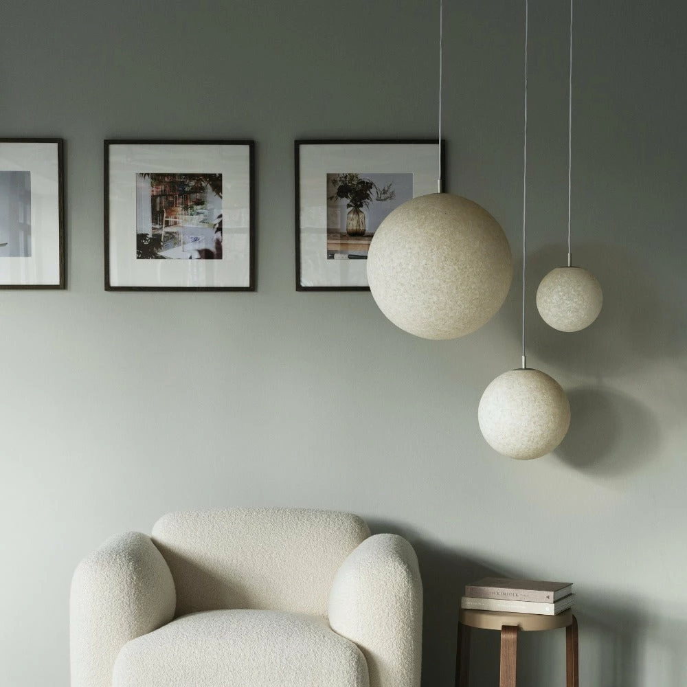 A reinterpretation of the archetypical spherical pendant lamp, the Pix Lamp by Normann Copenhagen gets its unique look from its composition of recycled plastic waste.