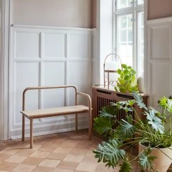 Round yet edgy. Maissi is an artistic two-person bench inspired by the handrails from old stairs and industrial machinery. The narrow style and clean cuts make it perfect for welcoming guests in the hallway or as an extra seat in the living room.