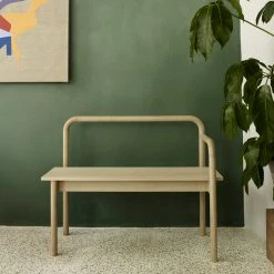 Round yet edgy. Maissi is an artistic two-person bench inspired by the handrails from old stairs and industrial machinery. The narrow style and clean cuts make it perfect for welcoming guests in the hallway or as an extra seat in the living room.