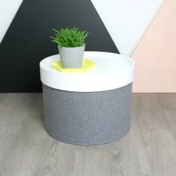 Pouf, coffee table and tray all rolled into one neat little drum shape. This pouf is perfect for a modern living space where flexibility is key. Take the tray off for the kids or when you need a foot rest then place it back again when you’re entertaining and need an extra tabletop.