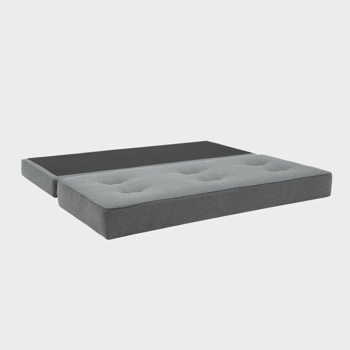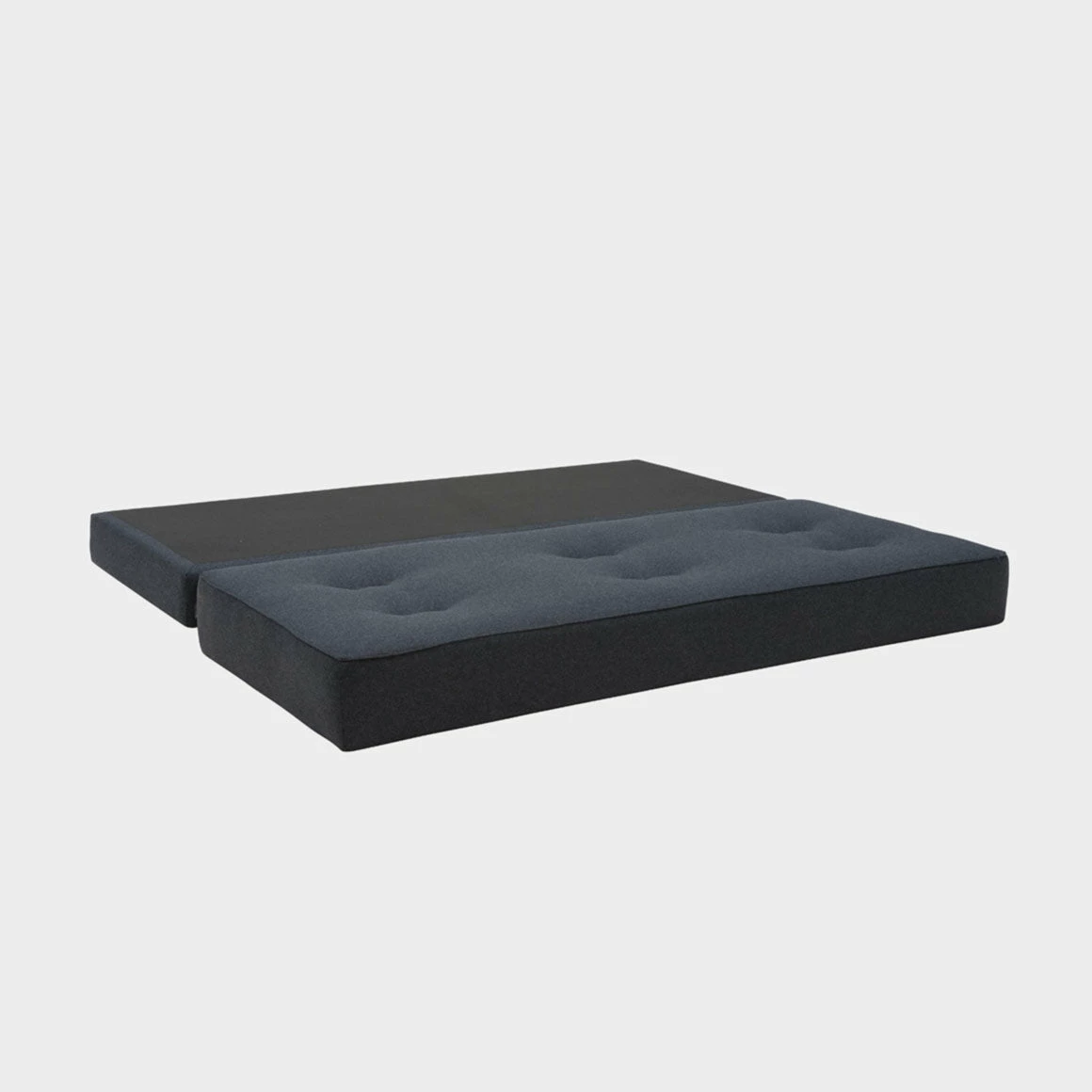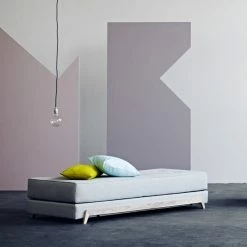 The top simply lifts off the base and can be placed alongside to create a double bed – or can be left on the base to serve as a single bed.