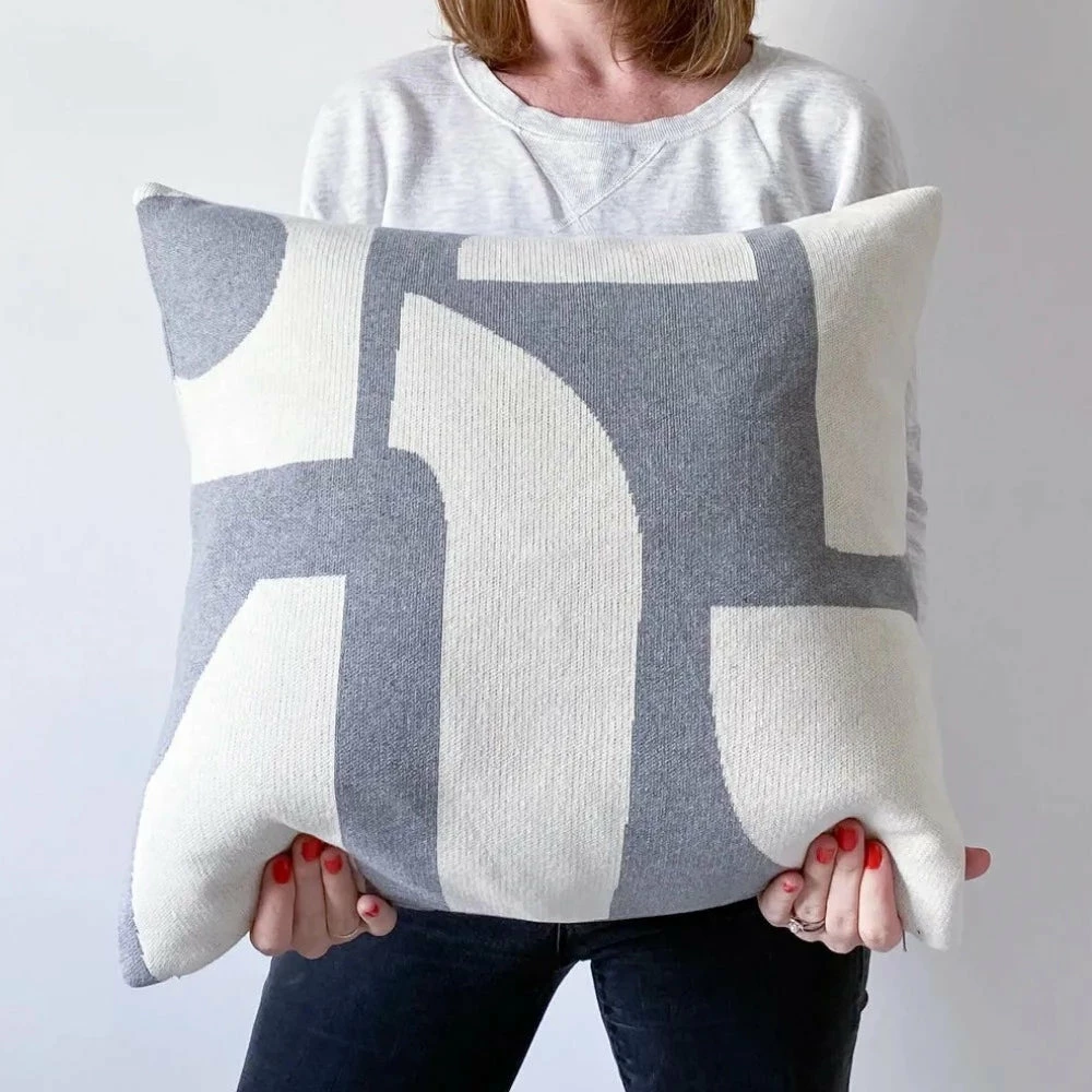 The Bruten design explores shape and form, and interest in negative space. It looks great mixed with other cushions and on a neutral sofa. Ivory & grey marl.