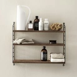 The pocket shelving unit is a lightweight storage system suitable for any room in the home and consists of two vertical side panels and three shelves.