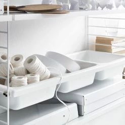 String is a modular and adaptable shelving system, designed by Swedish architect Nils Strinning in 1949. It became an instant classic thanks to its affordable pricing, flexibility and minimal aesthetic. It works as a shelving, work and storage solution and provides an unlimited number of layouts that can be quickly and easily changed.