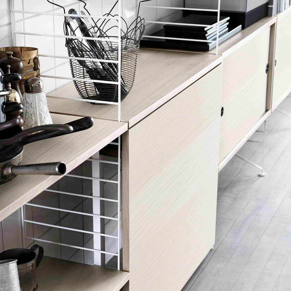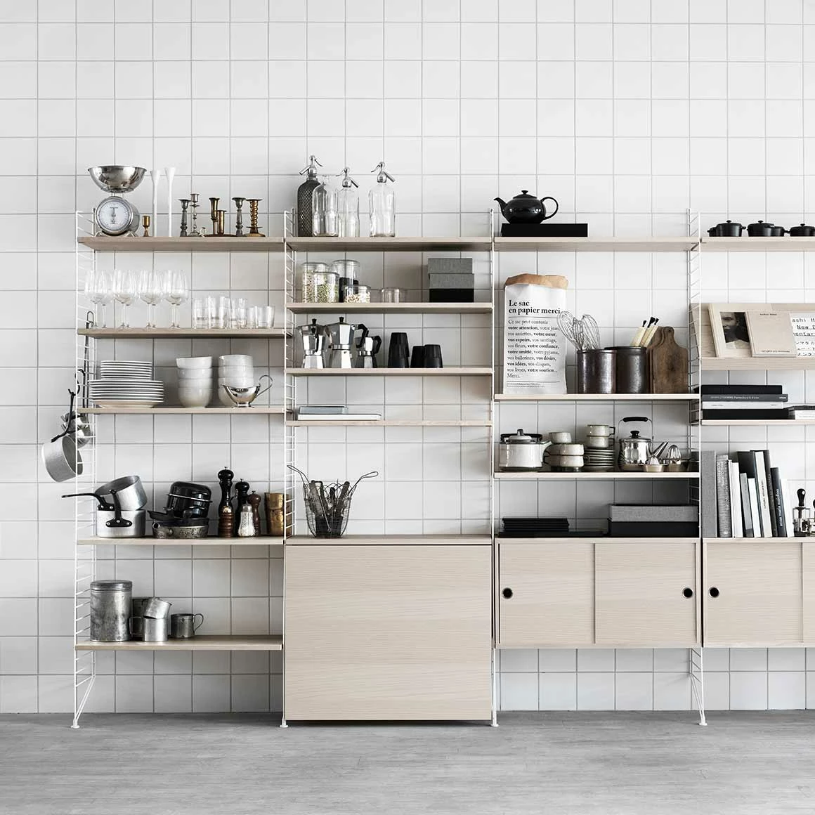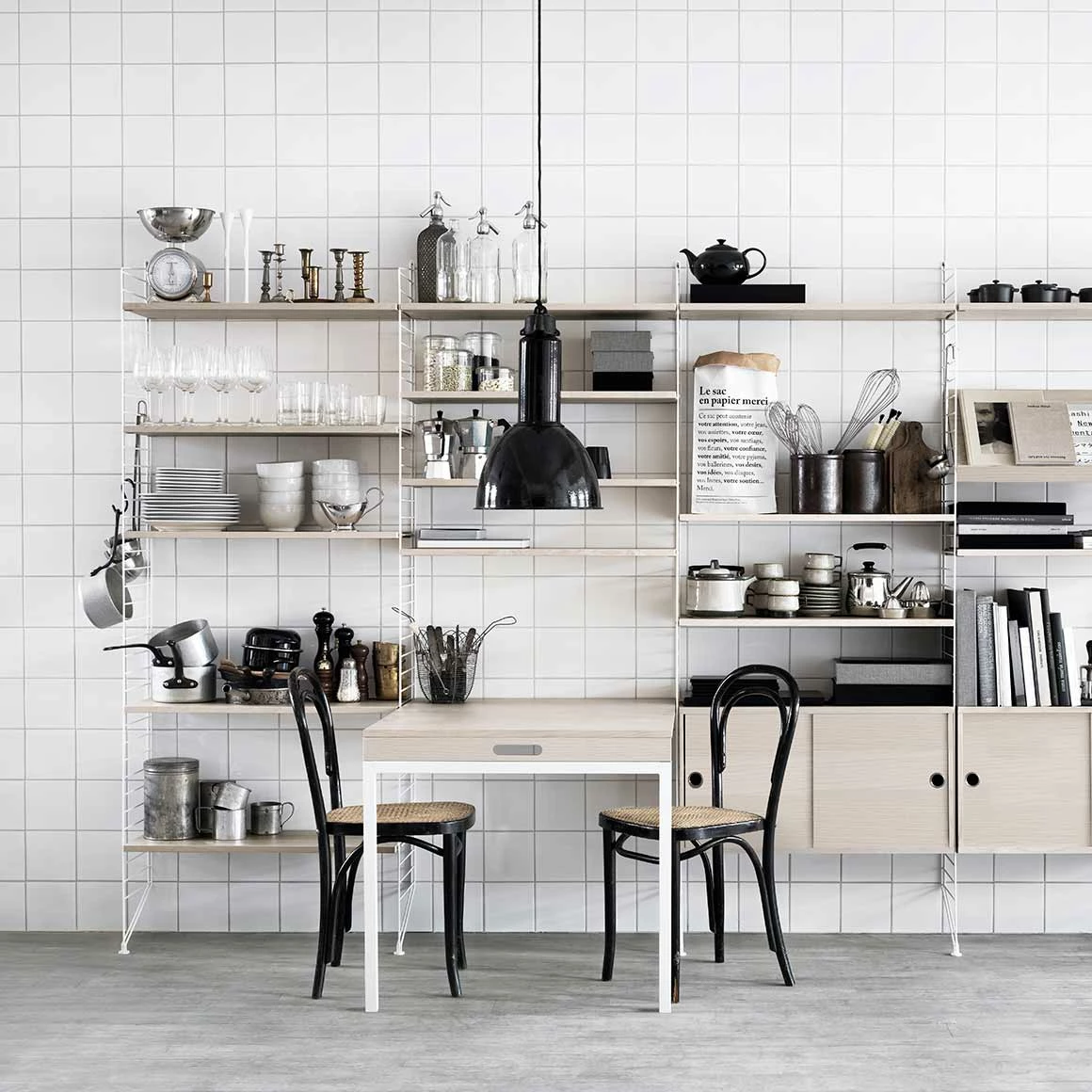 String is a modular and adaptable shelving system, designed by Swedish architect Nils Strinning in 1949. It became an instant classic thanks to its affordable pricing, flexibility and minimal aesthetic. It works as a shelving, work and storage solution and provides an unlimited number of layouts that can be quickly and easily changed.