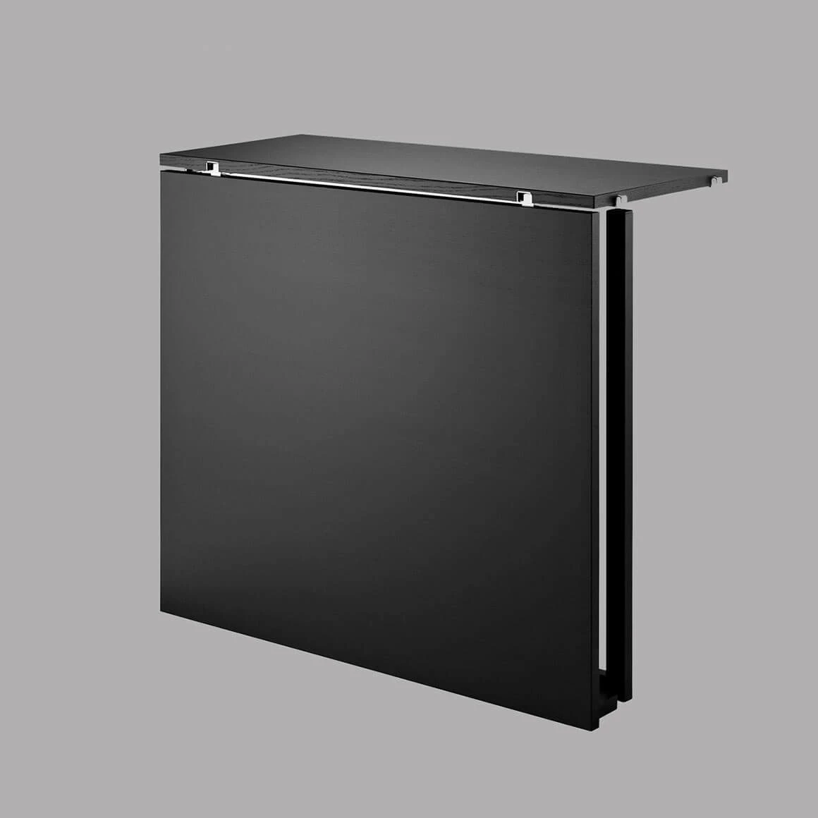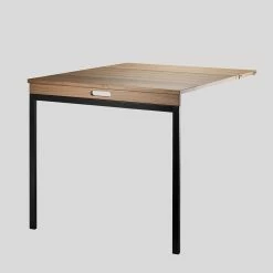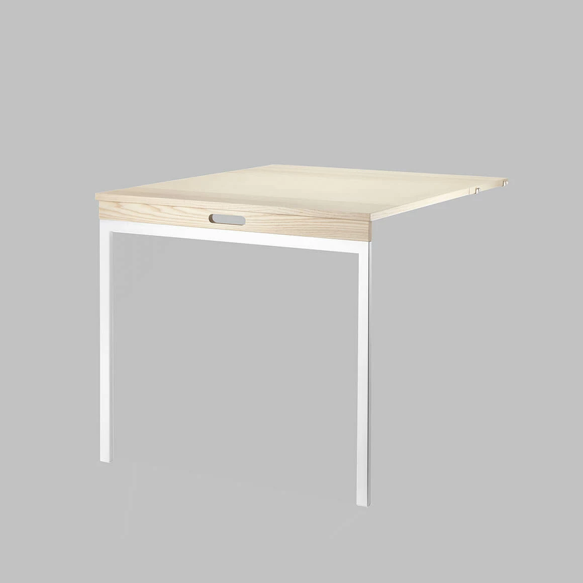 The String Folding Table is a compact surface which folds down and fits flush with the front of your String shelving system. When folded the table appears as a minimal timber sheet, unfolded the tables creates a dining or work table surface.