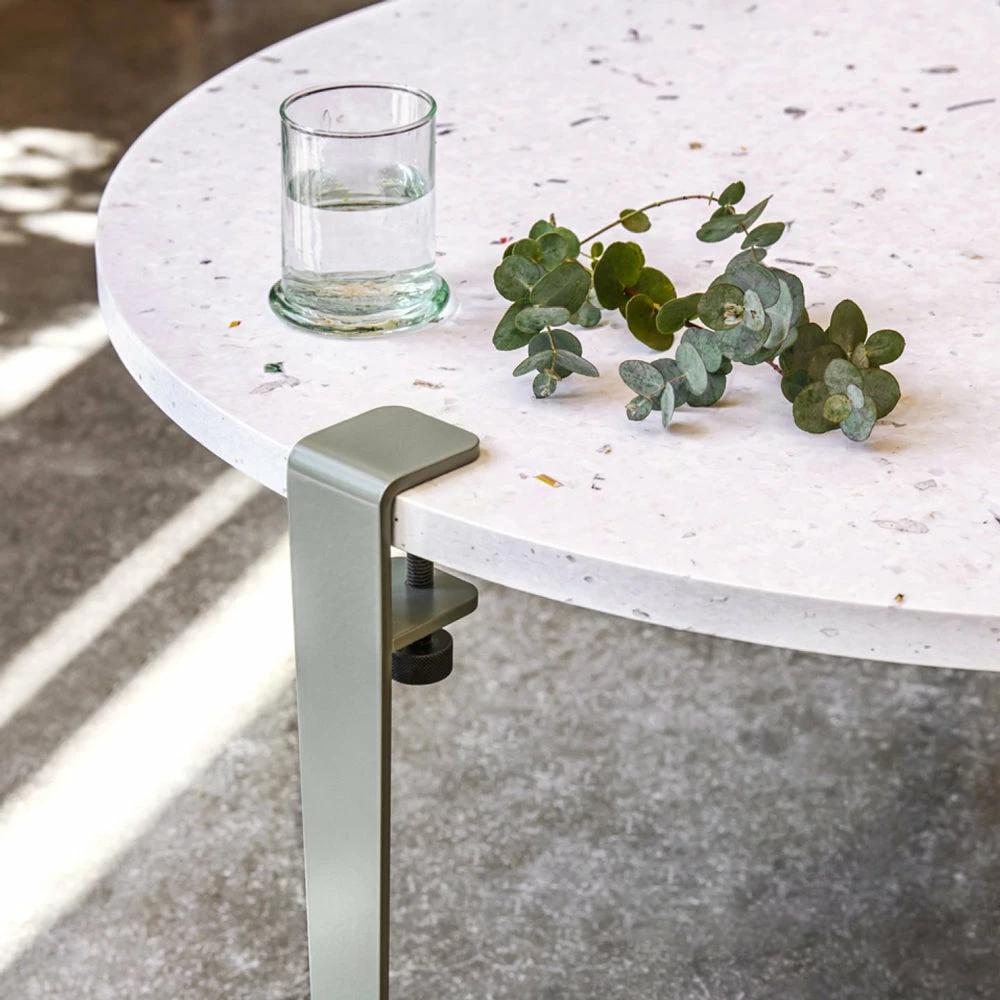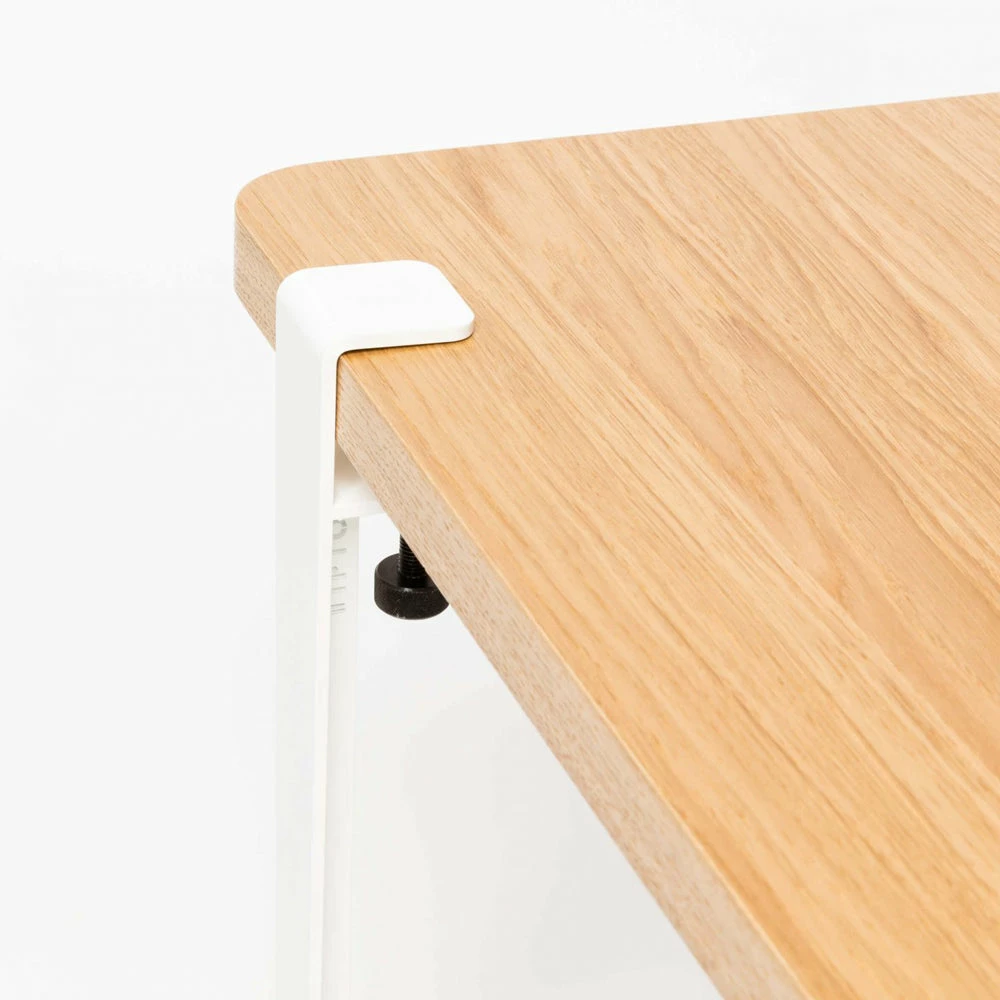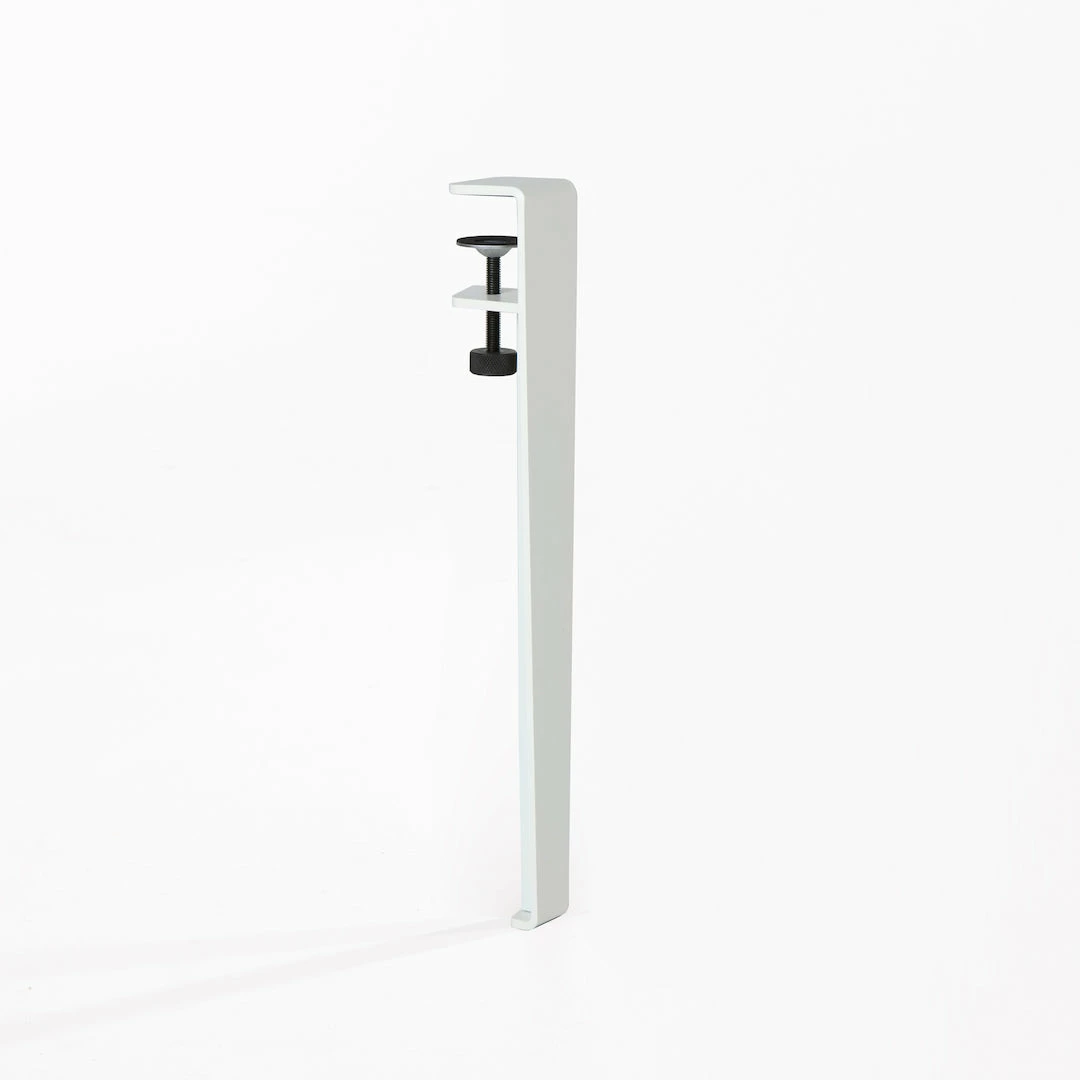 They can be fixed onto any tabletop with a clamping screw in seconds. Made from lacquered steel in Europe.