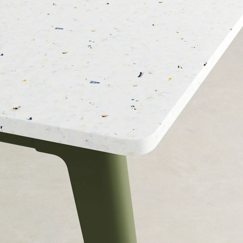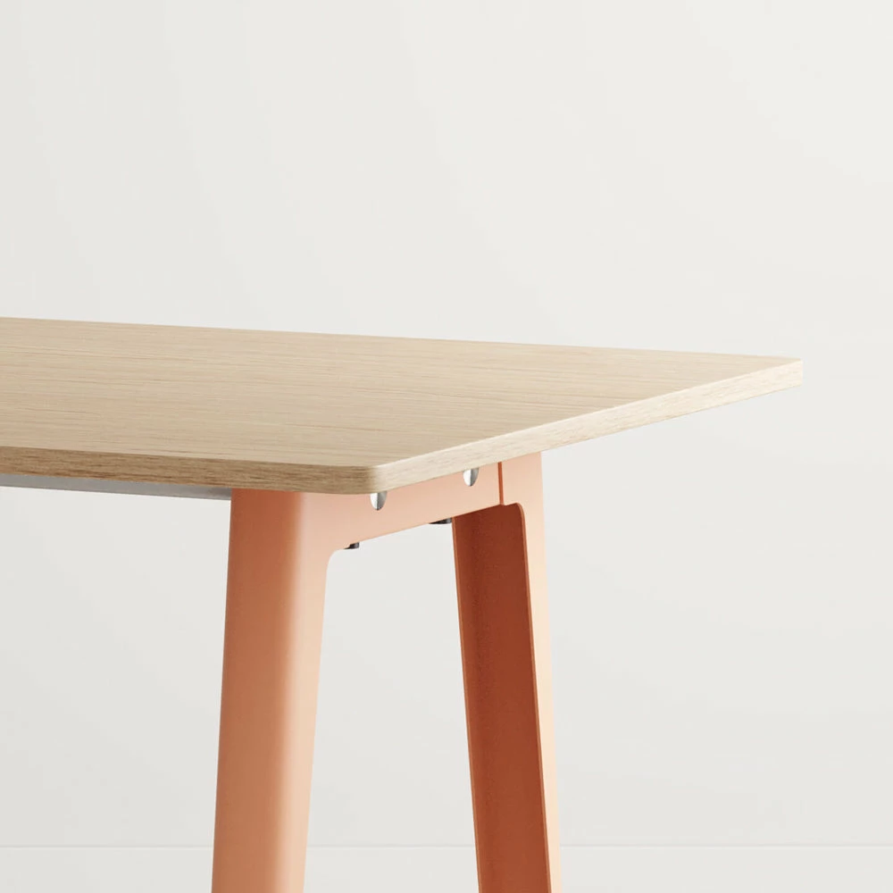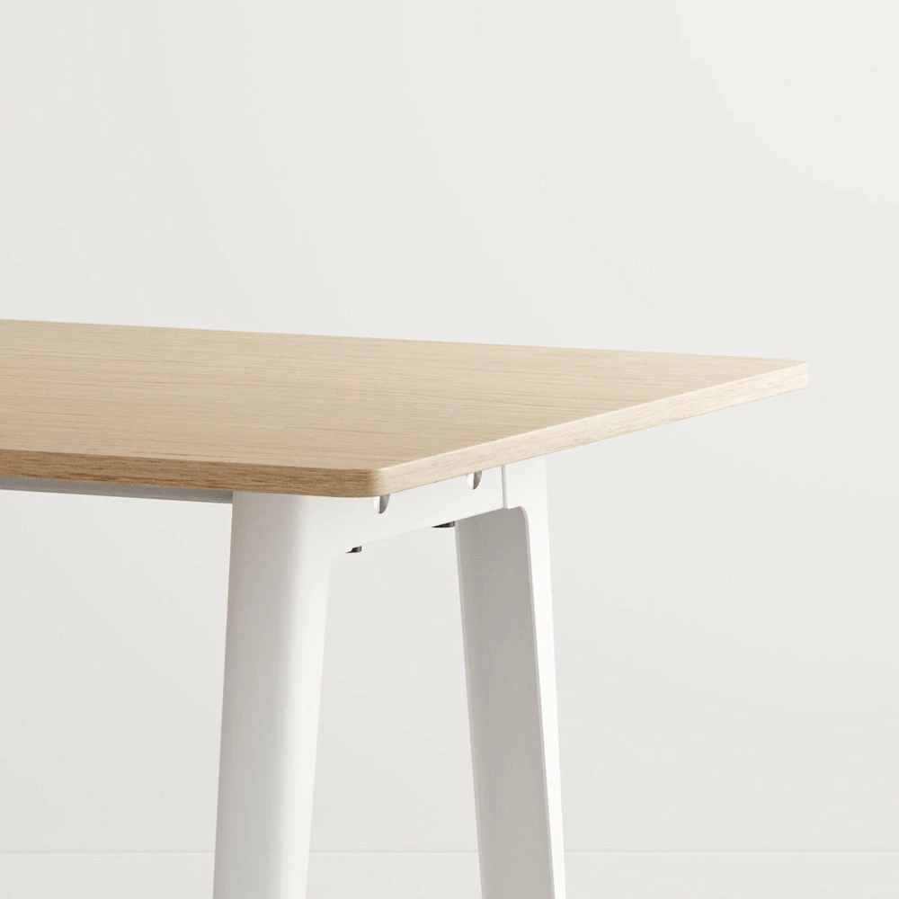 Tabletop options of oak veneer, white laminate or a recycled white plastic. Then choose a colour for the legs either to coordinate or contrast. The choice is yours.