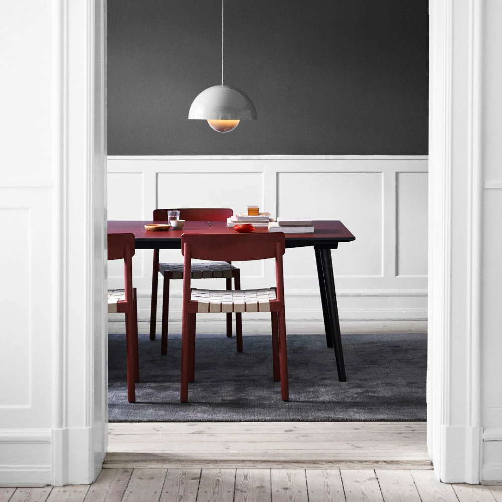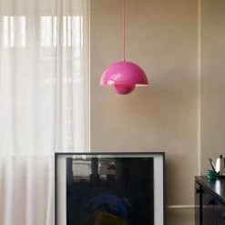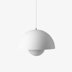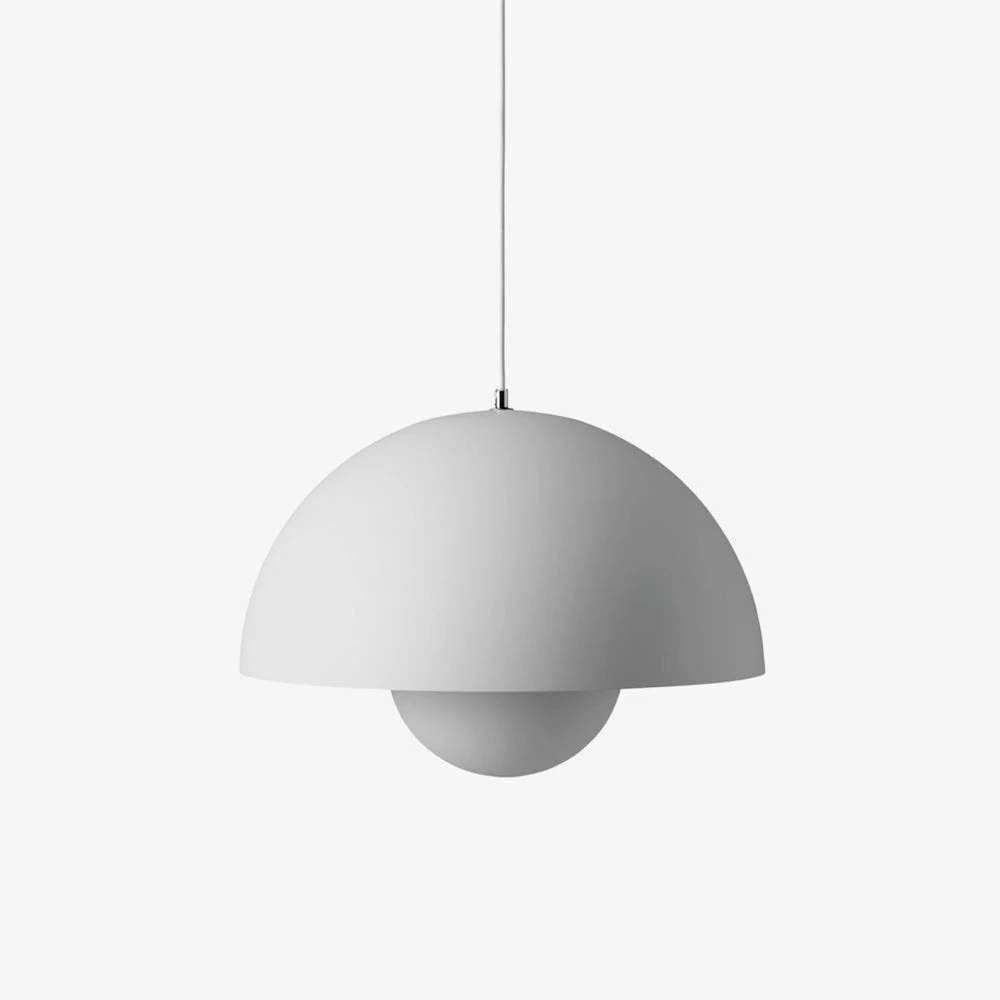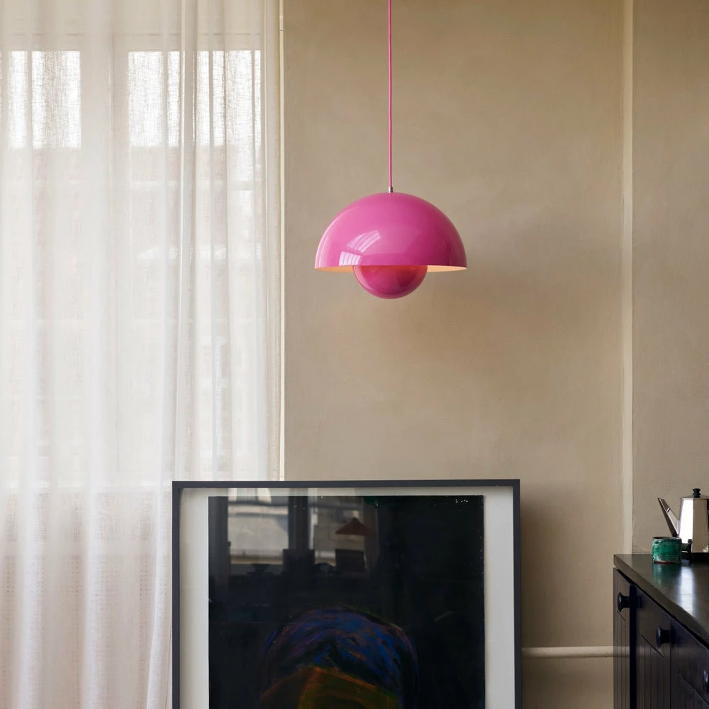 The Flowerpot series is designed by Verner Panton in the 1960s now made by &Tradition. Its rounded pendant that hangs from the semi-domed upper shade, embodies the experimental attitude of Verner Panton.