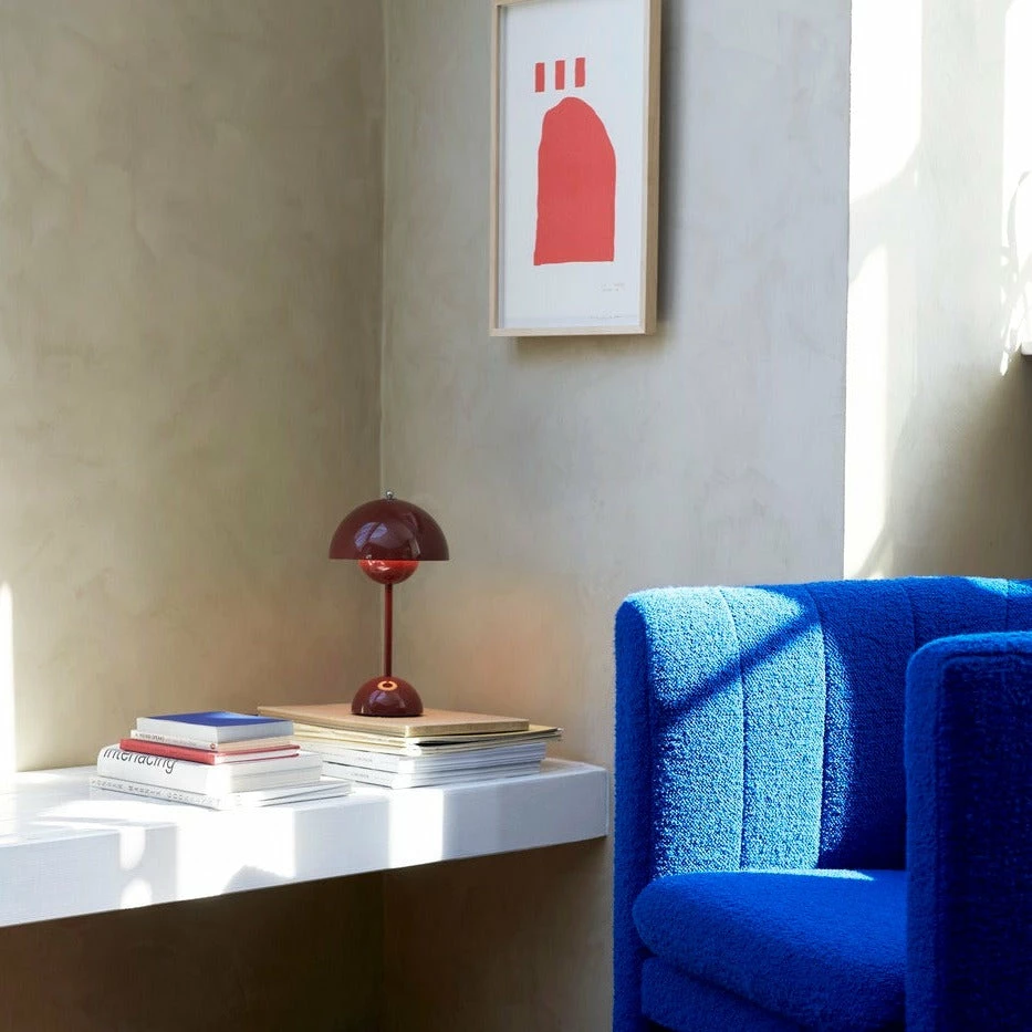 Slightly smaller in size than the table lamp version, and deliberately lightweight, the portable version comes equipped with a USB charging cable. Carry it from room to room or outdoors when you need some extra lighting.Â