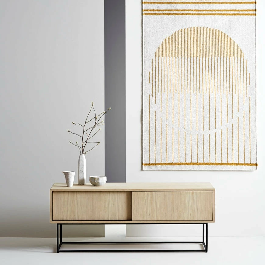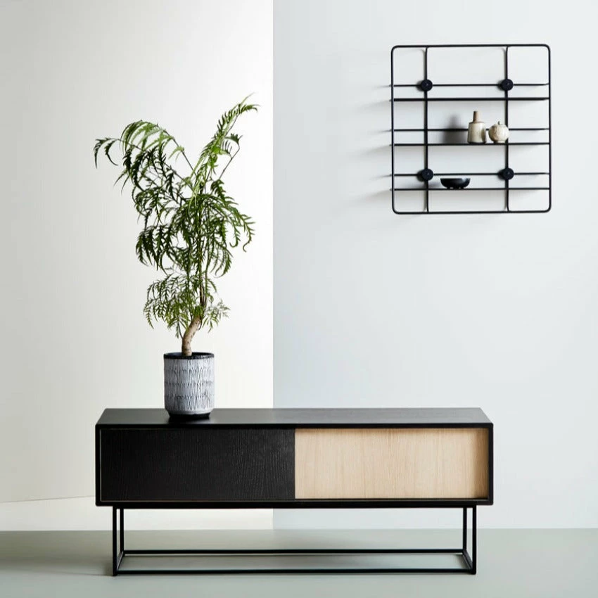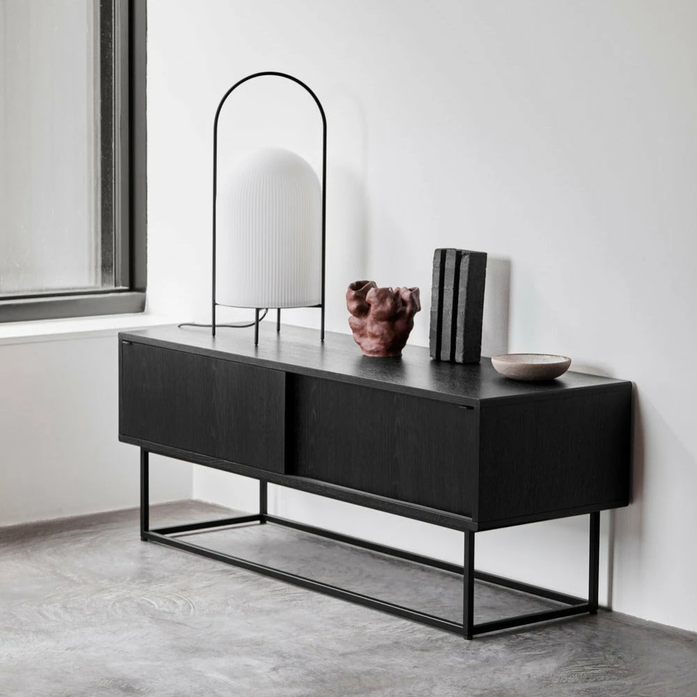 The graphic frame elegantly lifts the sideboard above the floor and adds lightness to the design.